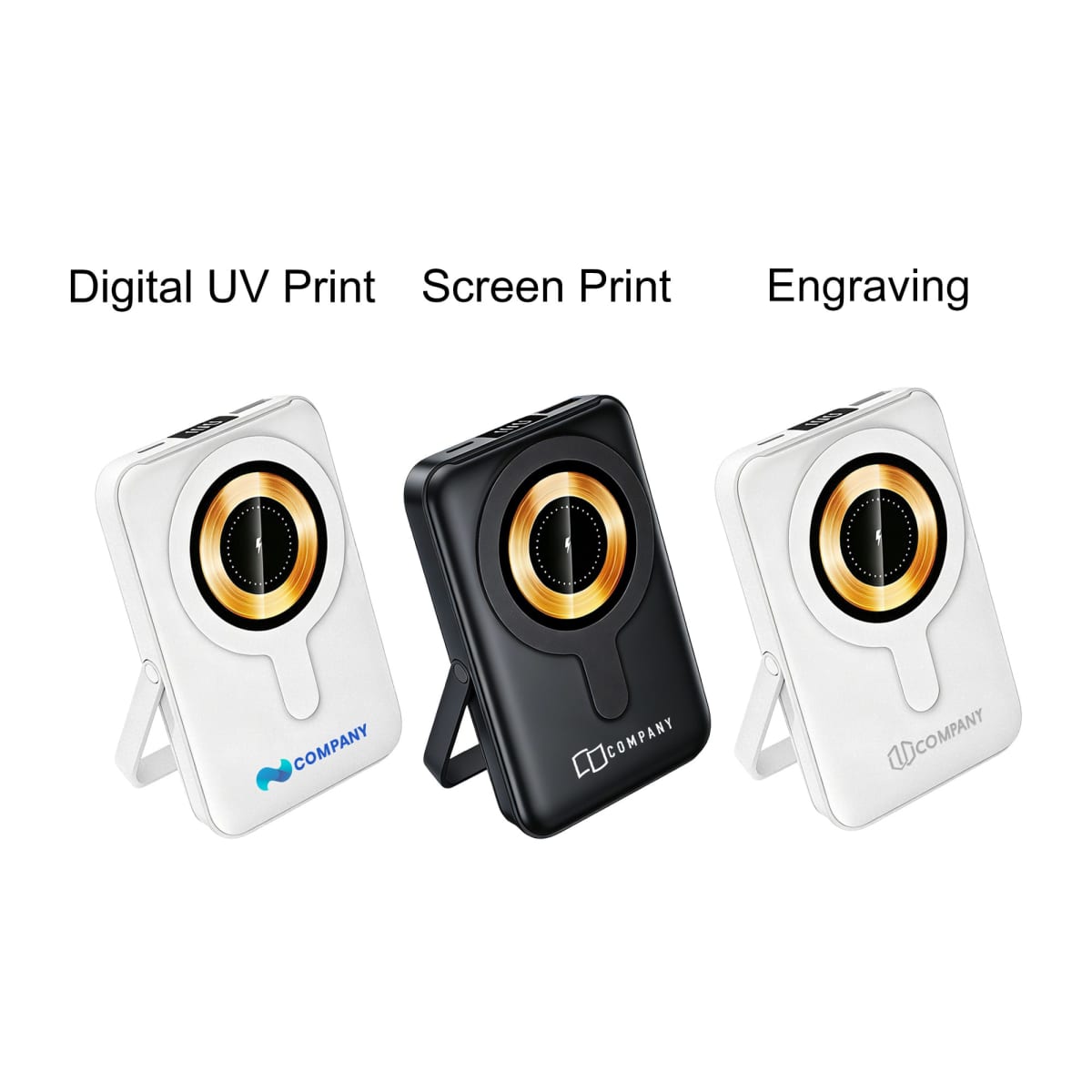 5 week, 10000mAh Magnetic Wireless Power Bank with Phone Stand, Screen Print, 1 colour/ 1 position Print Design: