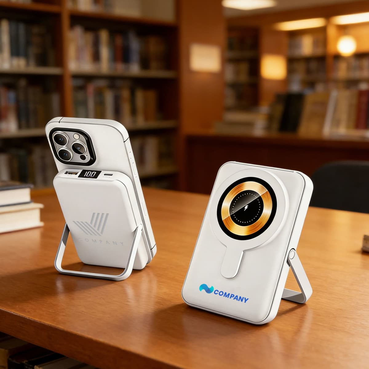 10 week, 10000mAh Magnetic Wireless Power Bank with Phone Stand, Engraving, 1 pos Design: