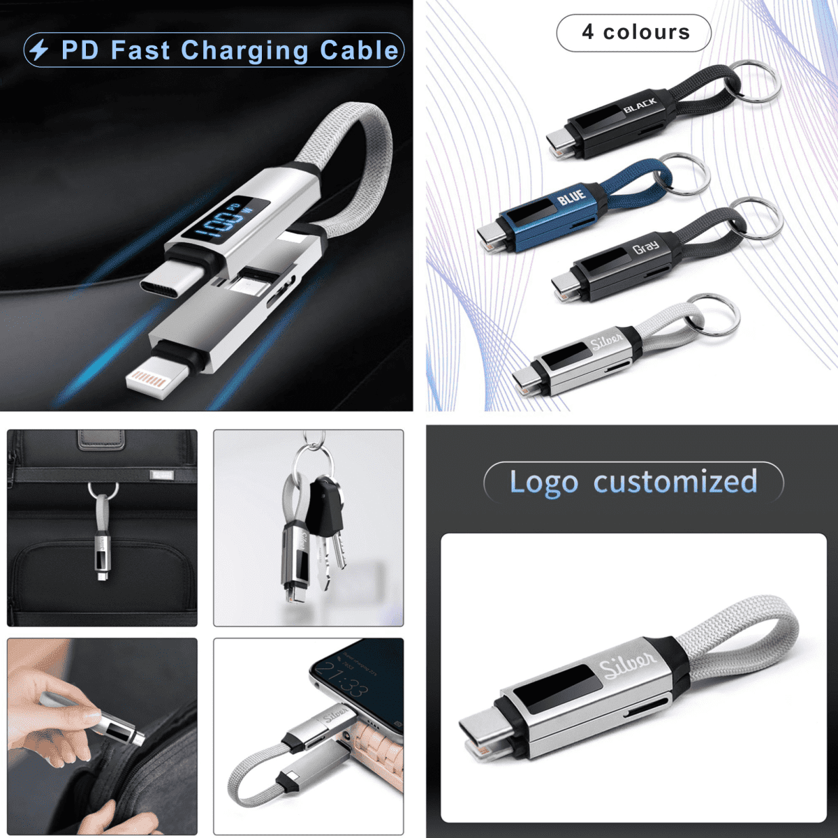 4 week, 100W 3-In-1 Aluminium Charging Cable with Digital Display, Screen Print, 1 colour/ 1 position Print