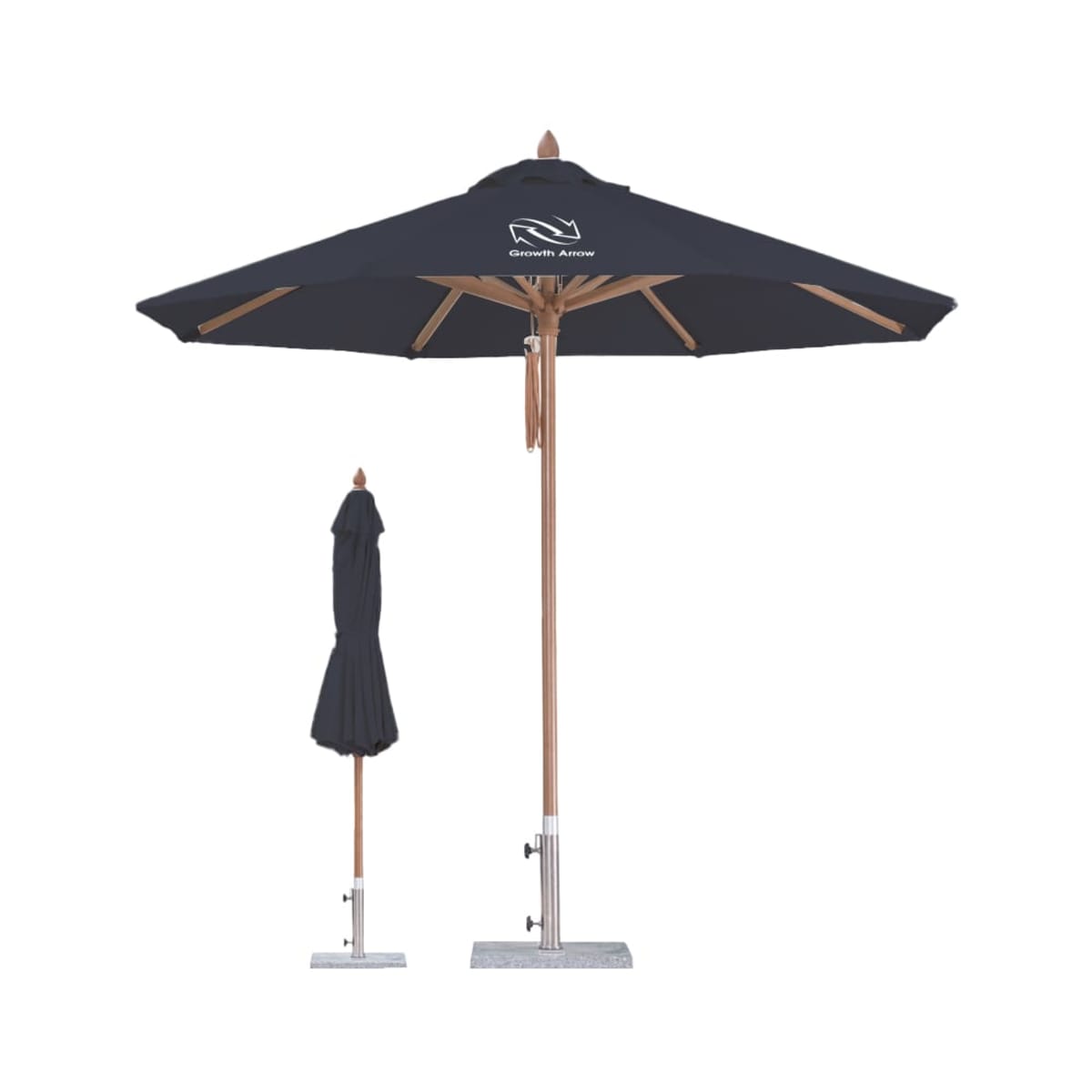 Keep your branding visible with our New wind-resistant Outdoor Umbrella! It is crafted from a strong fiberglass frame and durable acrylic fabric, effectively blocking sun and holding up to windy environments. The umbrella's wind resistance can reach at least Grade 8. Available in octagonal and square shapes, ranging from 2m to 4m wide. You can choose from our stock colours to match your preference and also personalize your umbrella with screen printing for a truly unique, branded touch. Our outdoor umbrella comes with a dust cover to keep it clean and tidy, extending its lifespan. Depending on the usage environment, there are also various base options for you to choose from. Whether it's for backyard fun or commercial use, this umbrella is sure to enhance your every outdoor moment.