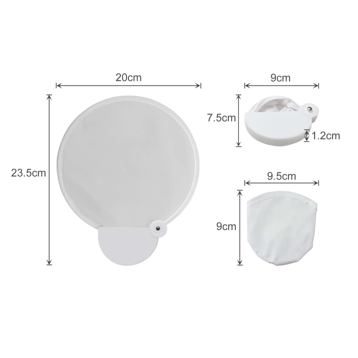 Promote your brand with our 20cm Foldable Reflective Fan, crafted from 190T polyester and PVC materials with a high-visibility reflective surface. The reflective surface doubles as a handy photo brightener. Featuring a compact pouch, our fan is convenient to store in bags or pockets. Customised logos or patterns through CMYK on the fan can amplify your brand promotion impact. Ideal for evening outdoors, summer events, or promotional giveaways, our fan provides cooling comfort.