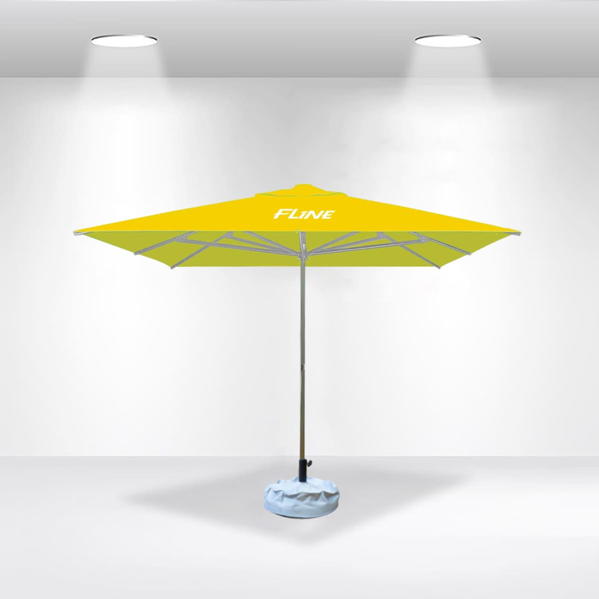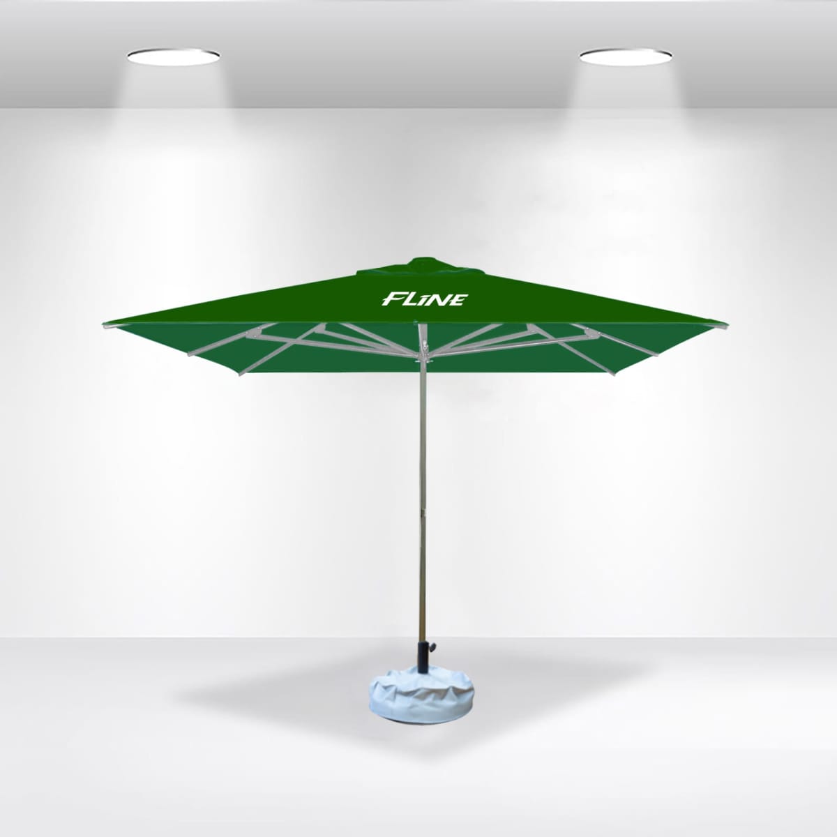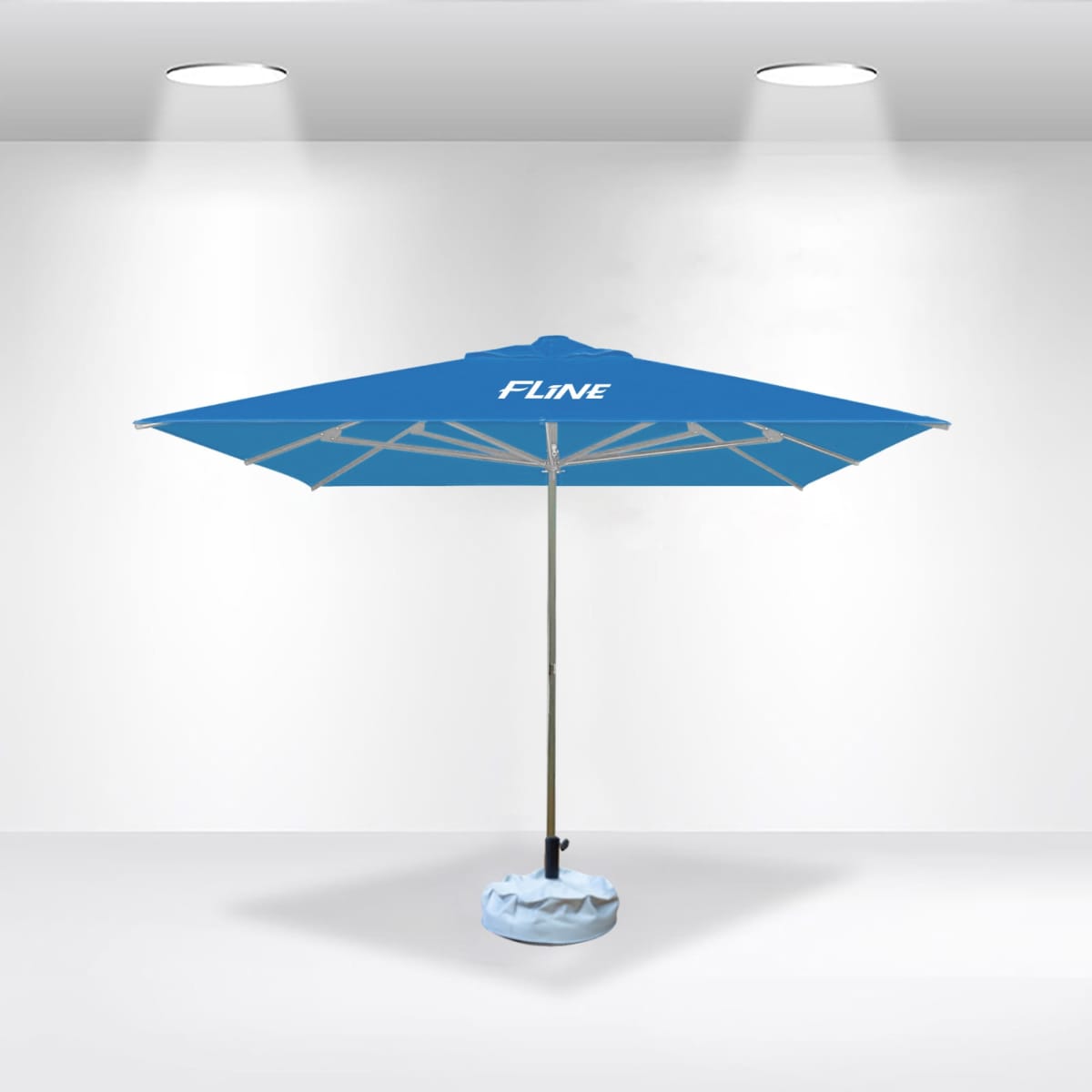 Keep your branding seen, with our great new commercial market umbrellas! Featuring a great range of stock colours to choose from, and screen print customisation. Stock colours allow for greater longetivity in sunlight from fading. Our umbrellas come with two material options for the hub and runners. Our base model is made from ABS, which is light weight. We also have an upgraded version, featuring aluminum construction, which offers greater strength and durability. Further more, we offer different kinds of stand bases that you can choose according to the use environment. These market umbrellas are ideal for creating shade for outdoor eating areas at bars, cafes, restaurants, and more.