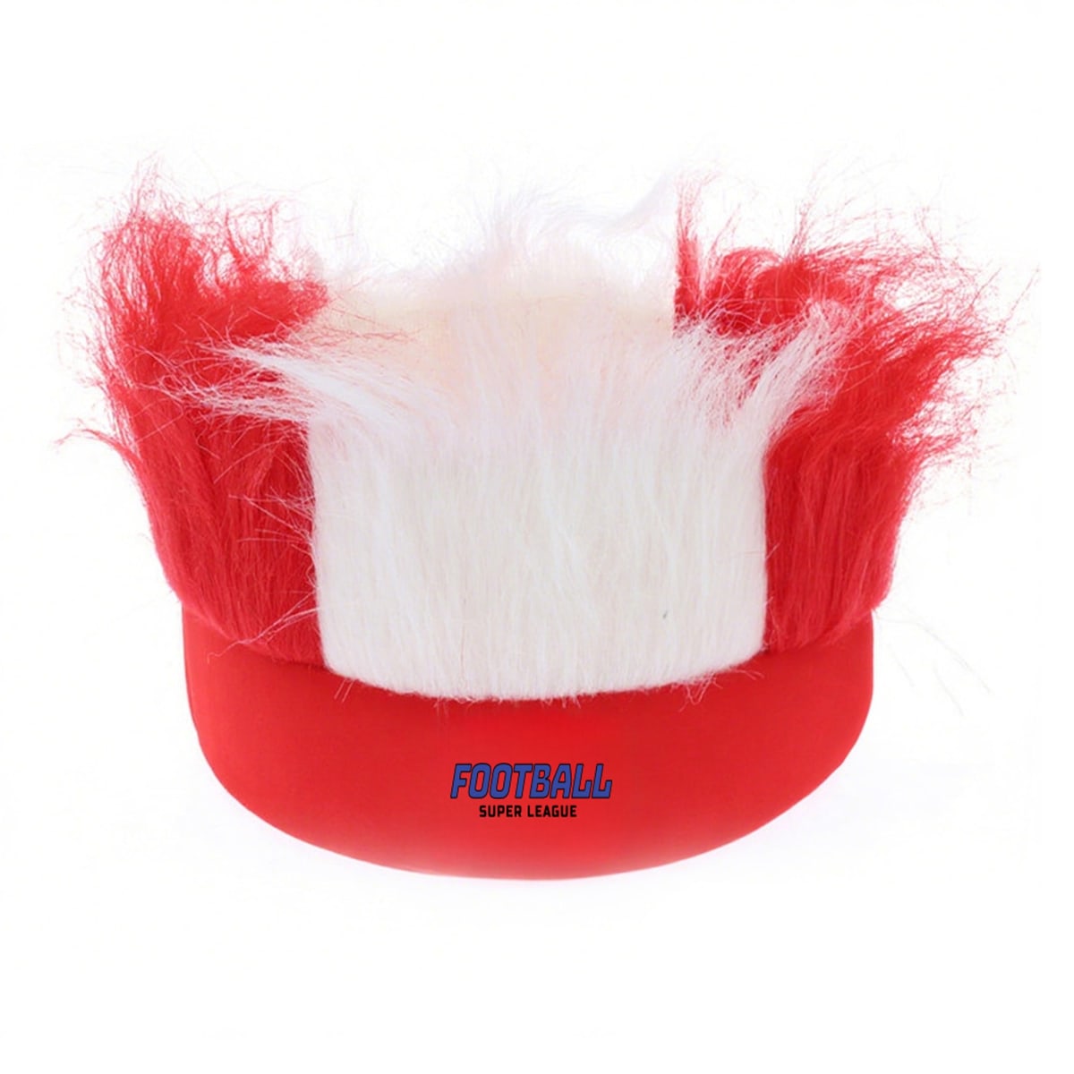 Fans Headband Wig – Crown Your Passion in Style! Made of fiber and soft polyester. Customised crisp, durable prints for logos or slogans—no fading even after the wildest celebrations. Pick up the wig in national colors (UK's Blue/Red/White, Germany's Black/Yellow/Red, etc.) to rep your squad with pride! Stretchy headband can stay put during jumps and dances, and weighs almost nothing. Perfect for World Cup chants, stadium cheers, or themed parties, ideal for fans, cosplay, or festival flair! it's your ultimate statement accessory for any high-energy event! The playful fusion of vibrant wig hair and a hassle-free headband turns heads and show your brand with it.