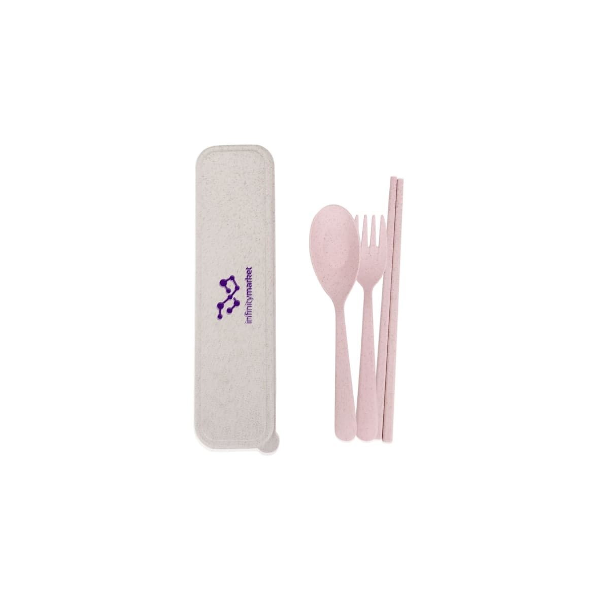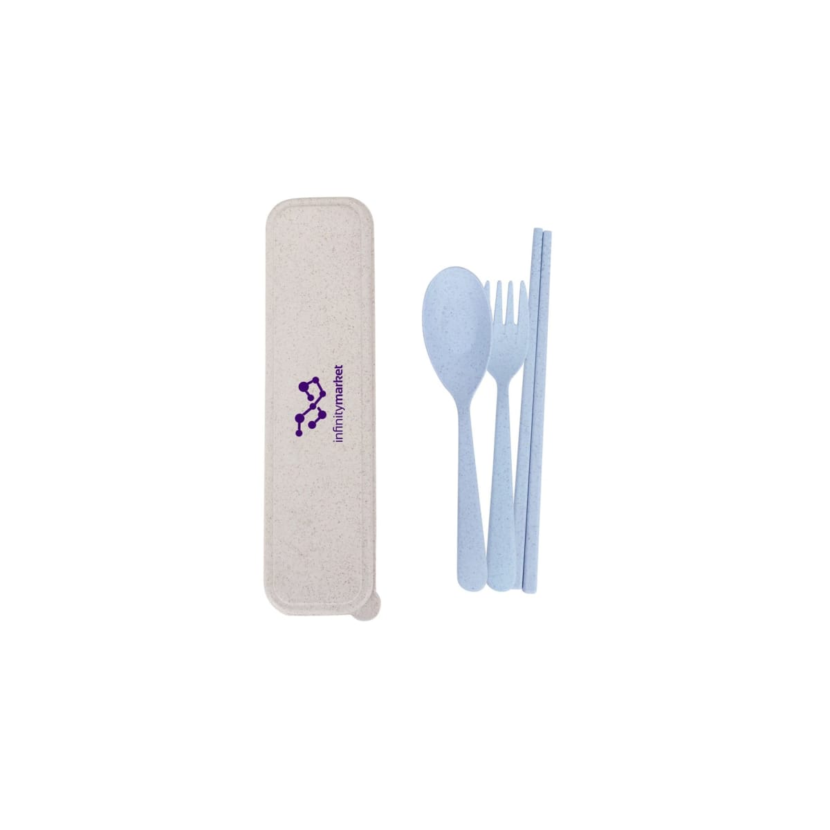 Portable all in one travel utensils set are supplied in Wheat straw and are compact and environmentally friendly. It is a great promotional giveaway when travelling on the road on business that is inclusive of a pair of chopsticks, a small spoon and a fork, which includes a portable case to keep all utensils neatly and can be print with your company name and logo.