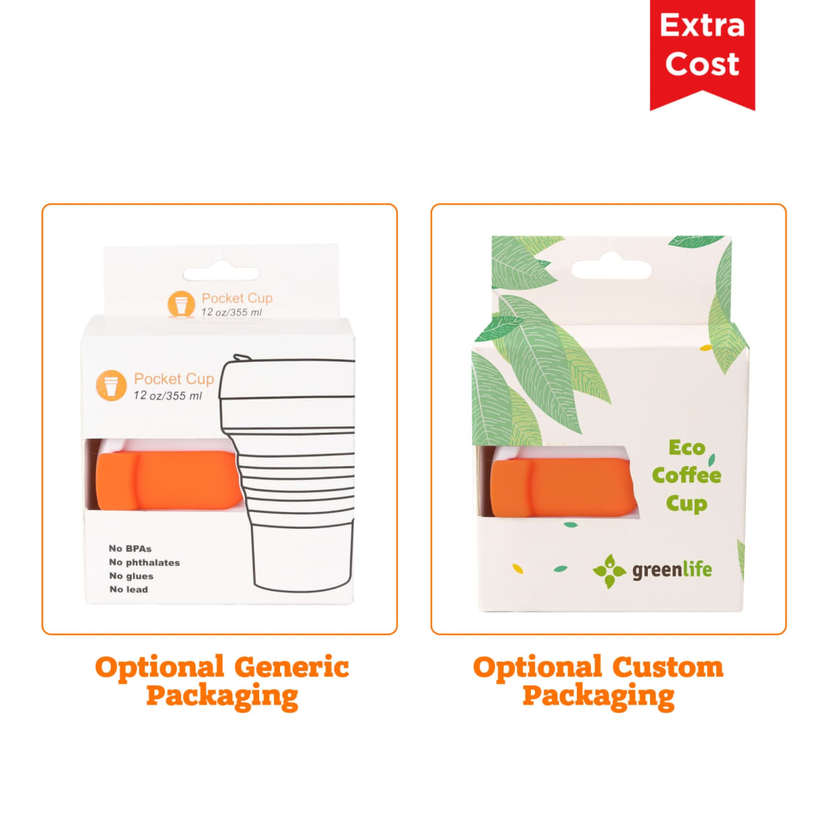 Collapsible silicon coffee cup, get your branding exposed during every coffee break. This silicon cup with a smart design which is great for saving your space, it can be collapsed and expanded in seconds. It available in 6 different colours and both the covers and the cup holders can be printed with screen print or full colour logo.You can also choose the optional packaging to upgrade your promotional products.Standard Opp bag included. Optional custom box available for qty over 1k units