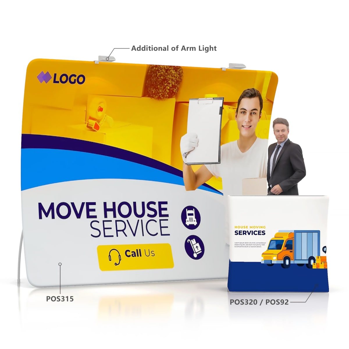Get your branding seen at your next event, with our new display wall. The lightweight and strong aluminum frames are powerfully-built to sustain the fabric's stretch over long periods of time. The aluminum tube has a snap-lock function that can be easily assembled without tools. Made of Eco-friendly materials and reusable structure. Supporting customization via full surface sublimation printing. Can also be printed on both sides. Use our printed fabric wall banner as a background for stages, events, photobooths, press conferences, award ceremonies and more.