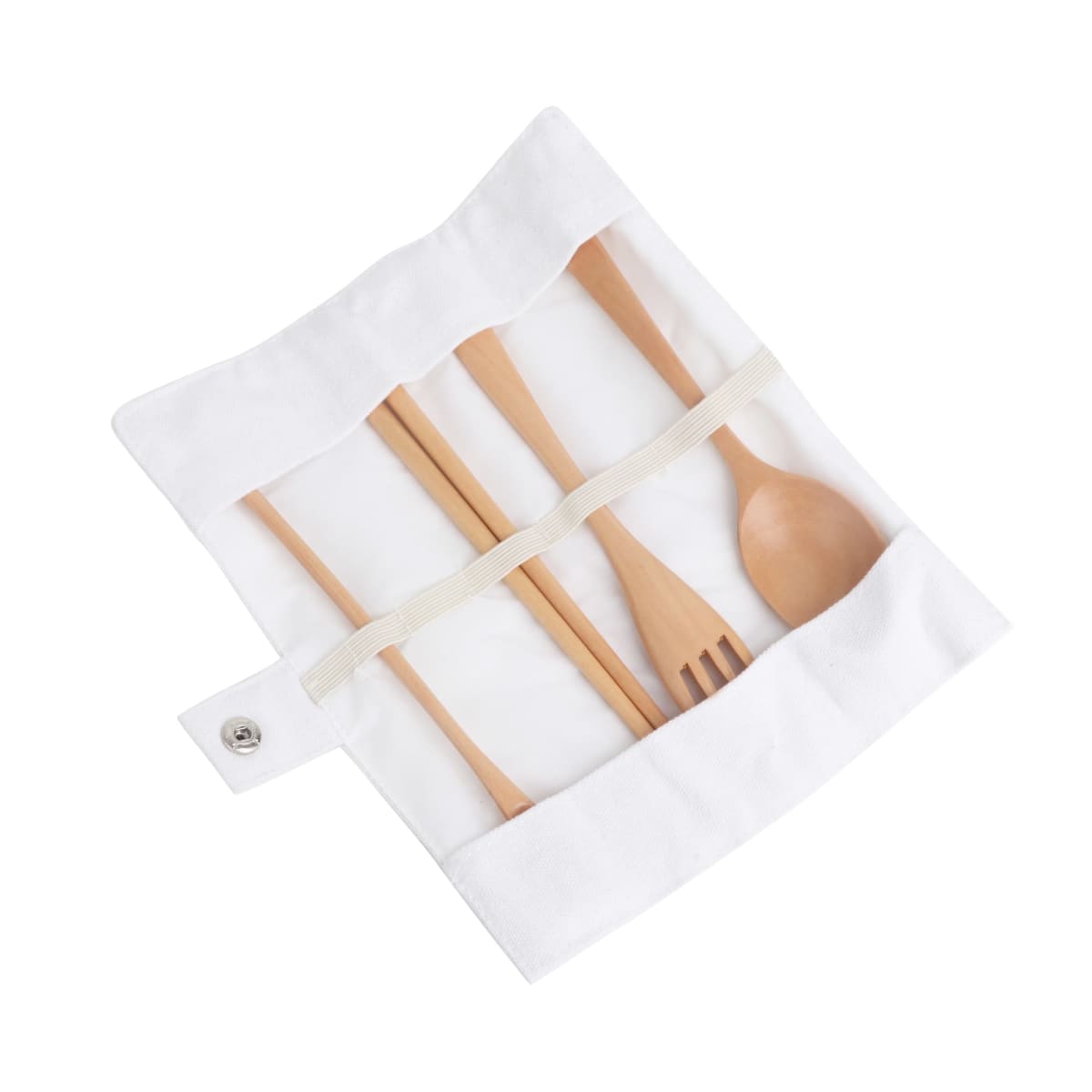 This wooden utensil set is a travel-friendly and eco-friendly promotional giveaway. It is supplied with 4 pieces bamboo utensils set, including a pair of chopsticks, a spoon & fork, and a coffee spoon and pouch. It is a great gift or giveaway option for company run luncheons or family fun days. A canvas pouch is included to keep all utensils neat and can be printed with your company name and logo.