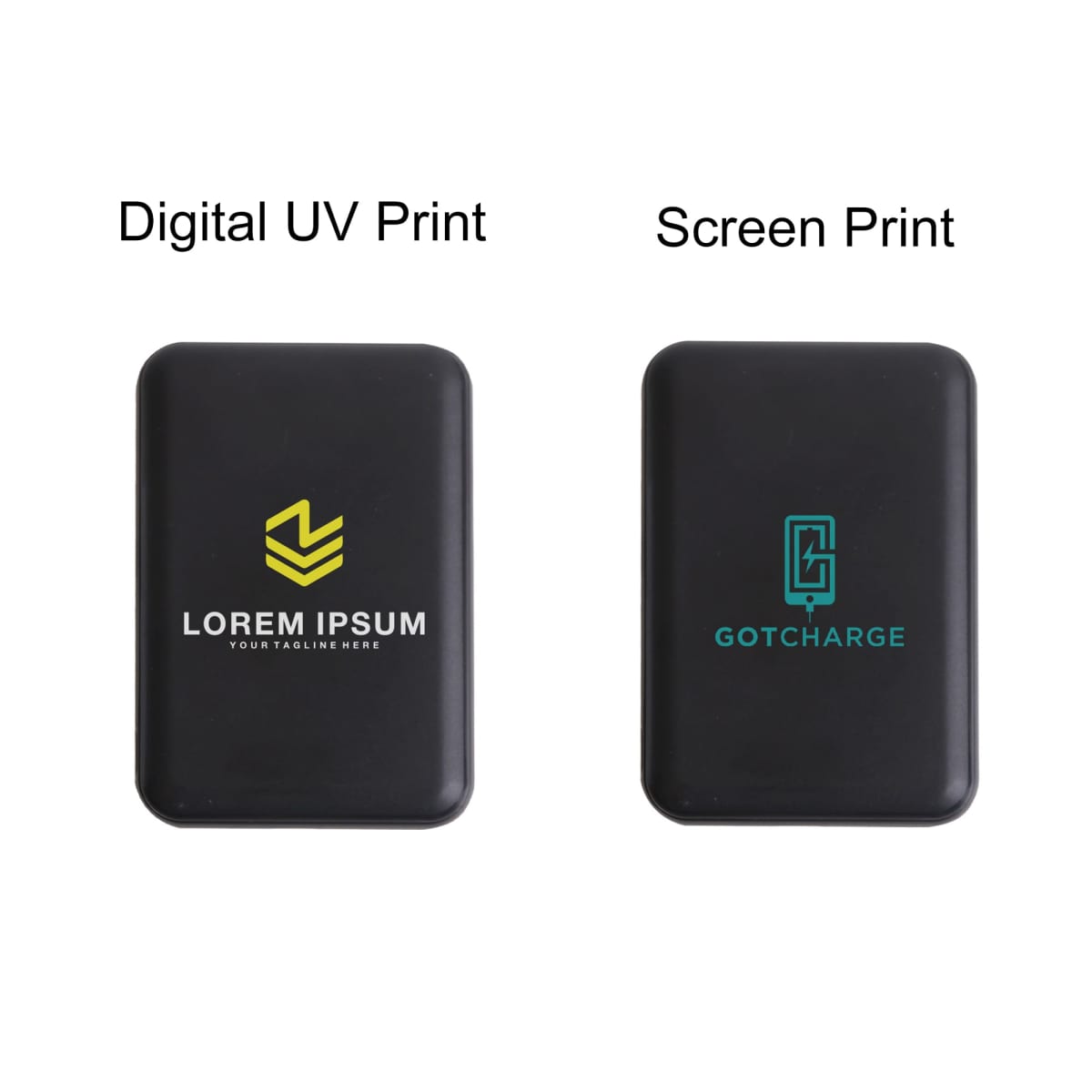 Keep your devices charged on the go, with our 5,000 mAh Eco Magnetic Power Bank. This power bank is small and portable, and has a magnetic connection, for use with compatible Apple devices. We will use screen print, UV print to customize your brand logo. This product is made from 45% recycled ABS materials. Charging times: iPhone 15pro: about 0.9 times, Samsung S24: about 0.7 times.