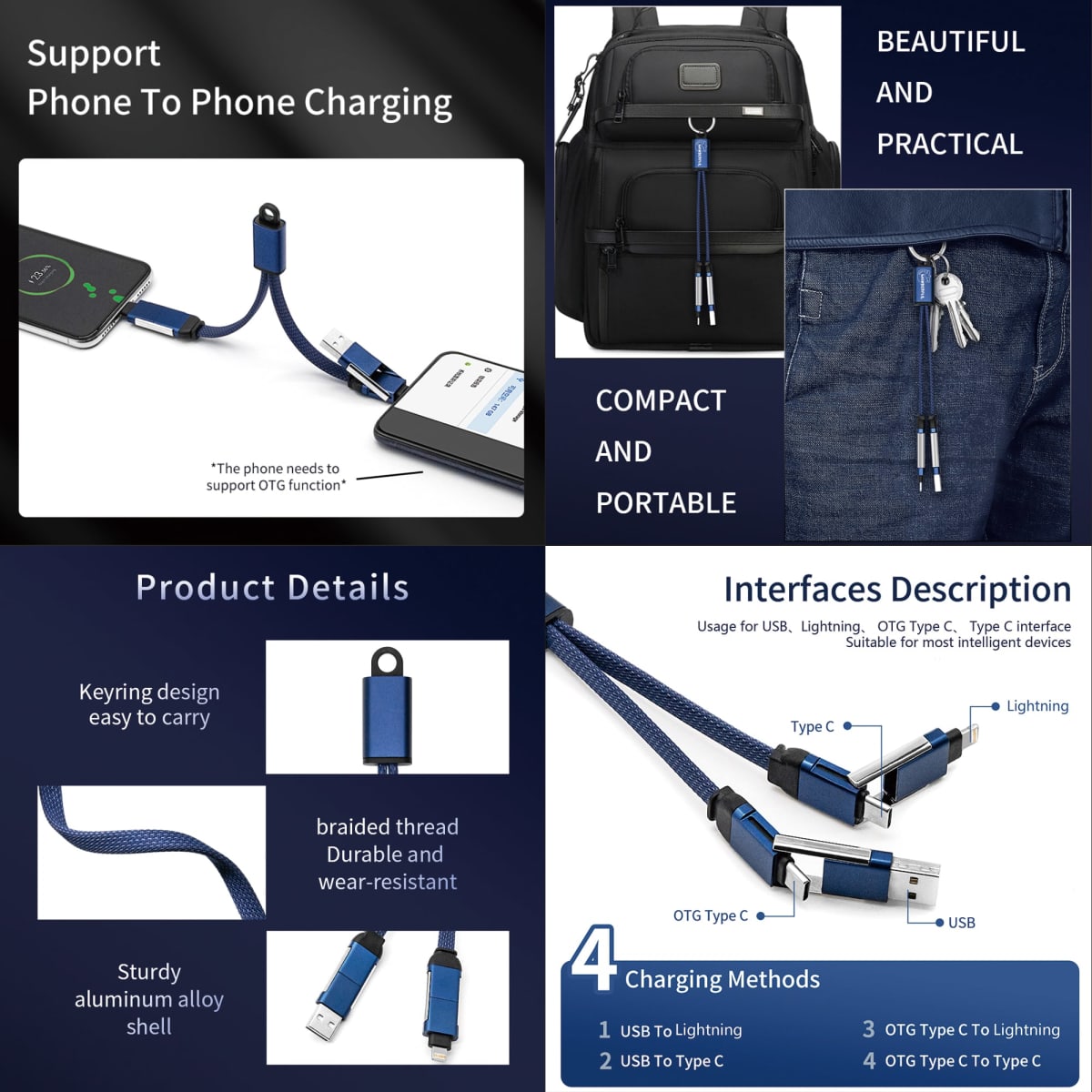 Upgrade your charging essentials with our 60W 4-in-1 Braided Charging Cable with Keyring. Crafted from premium aluminium alloy and braided fabric, this 16.5cm cable is durable, portable, and built to last. Available in four stylish colours, it can be customized with your logo using screen print, UV print, or engraving. With four versatile connectors, it supports 60W fast charging and high-speed data transfer about 33.1 Mb/s, making it perfect for powering phones, tablets, and even laptops. Compact and convenient with its keyring design, it is ideal for home, office, travel, or promotional use.