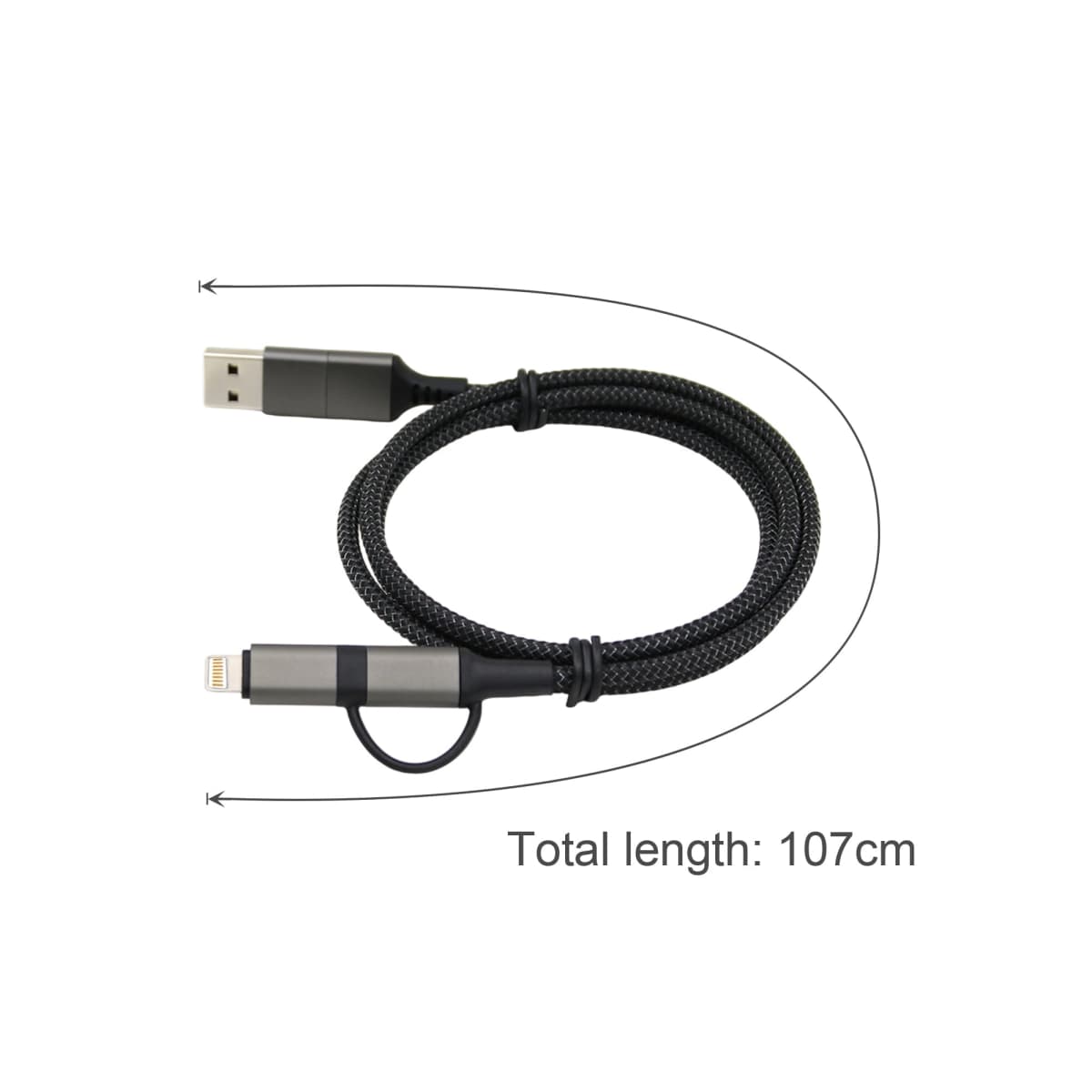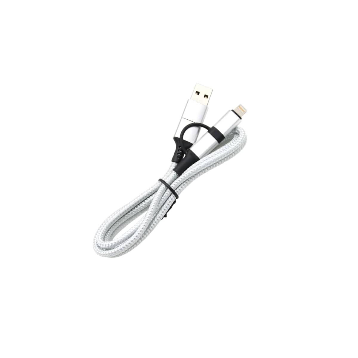 Upgrade your charging experience with our 60W Long 4-in-1 Braided Charging Cable! Crafted from premium aluminium alloy and braided fabric, this 107cm cable is durable, flexible, and tangle-resistant. Available in 5 stylish colours, it can be customized with screen print, UV print, or engraving for a personal or corporate touch. Supporting 60W Type-C fast charging and 20W Lightning charging, plus data transfer speeds about 34.7 Mb/s, it powers phones, tablets, and even laptops with ease. The versatile dual-head design (USB-A/Type-C to Lightning/Type-C) makes it compatible with a wide range of devices. Packaged in an elegant black gift box, it’s a practical and stylish choice for personal use, promotions, or corporate gifting.