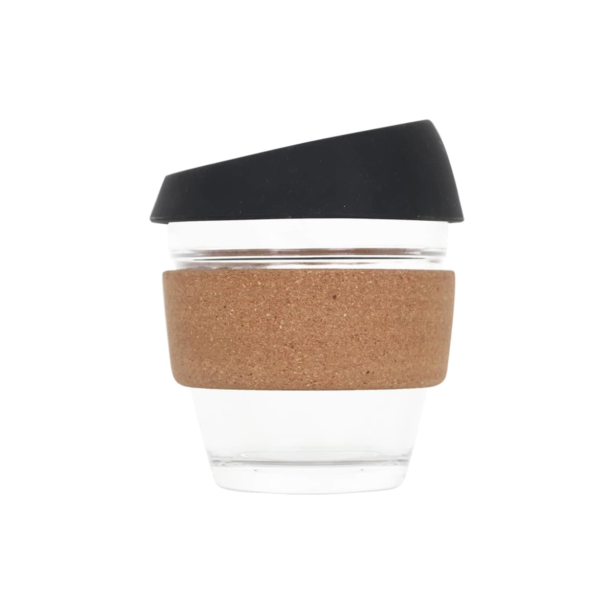 Reusable glass coffee cups are the perfect reusable coffee cups. Both the cork band and the glass cup are made from food-grade material. The heat resistant cork band ensures they are easy to hold with any hot beverages. A great way to promote your eco-friendly credentials, these compact reusable glass cups are perfect for your morning coffee cuppa.