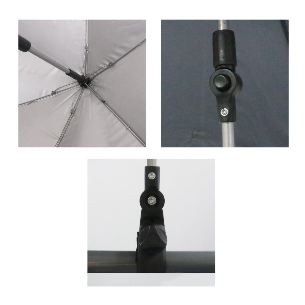 Our Adjustable Umbrella with Universal Clamp is a clamp-on shade canopy umbrella that offers UPF 50 plus protection to keep you sun safe while outdoors. Made from 210D pongee canopy oxford silver glue fabric. With screen print to highlight your design. The rugged canopy cover is durable, also comes with a heavy-duty universal clamp, to connect to square and tubular surfaces, which ensures a secure hold on golf bags, beach chairs, or even bleachers. Get the shade you need in order to enjoy the outdoor activities you love. This umbrella can also be folded down to a compact size for easy storage.