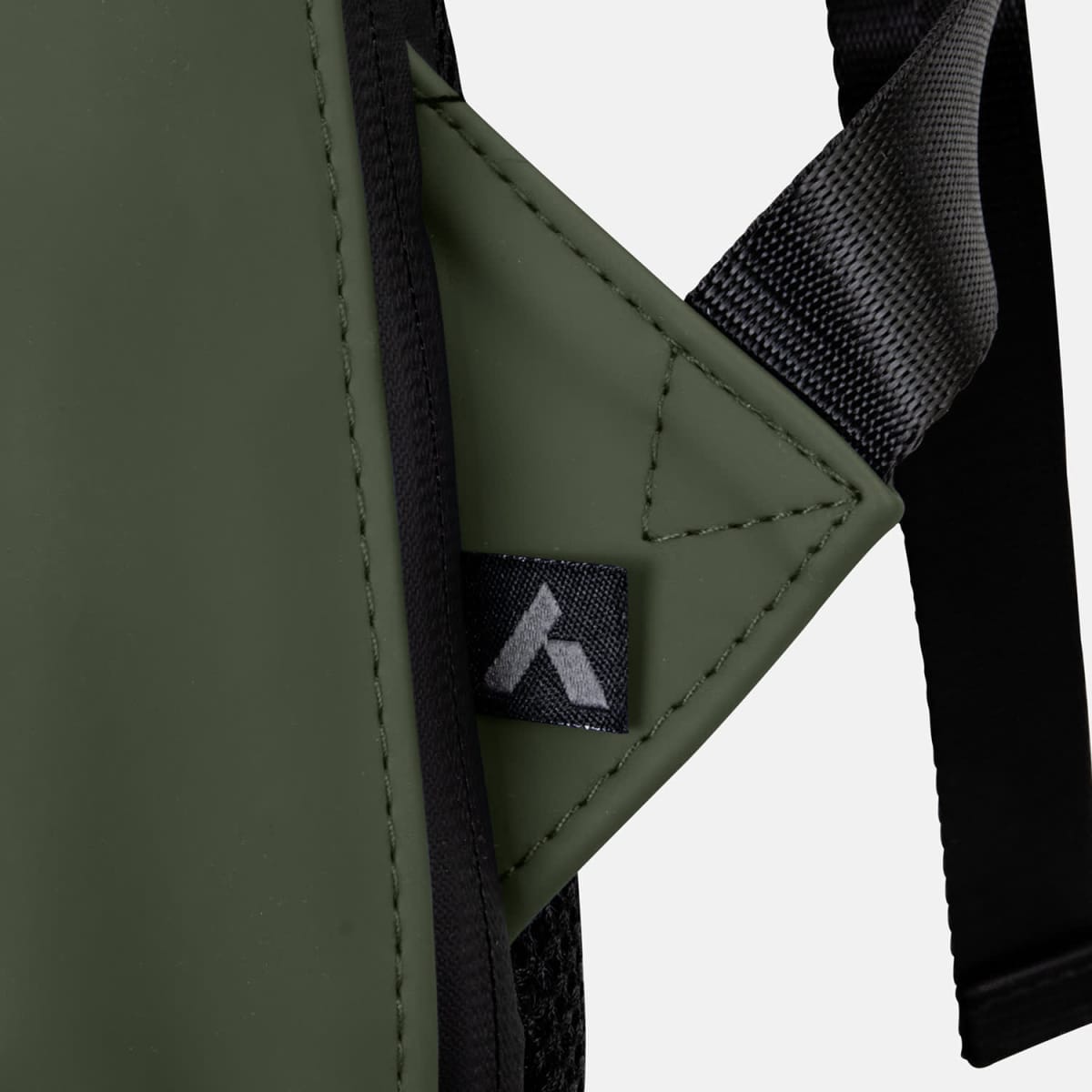 * 16L main zippered compartment with flap closure and snap-release buckle