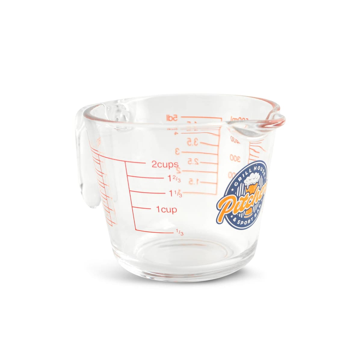 Get your branding seen with our new measuring jug. Made from durable high borosilicate glass, safe for use in microwaves. Features a comfortable handle and clear, easy-to-read measurements (ounces, millilitres, decilitres, and cups). With high fire decal print to highlight your design. Perfect for baking, cooking, or mixing drinks.