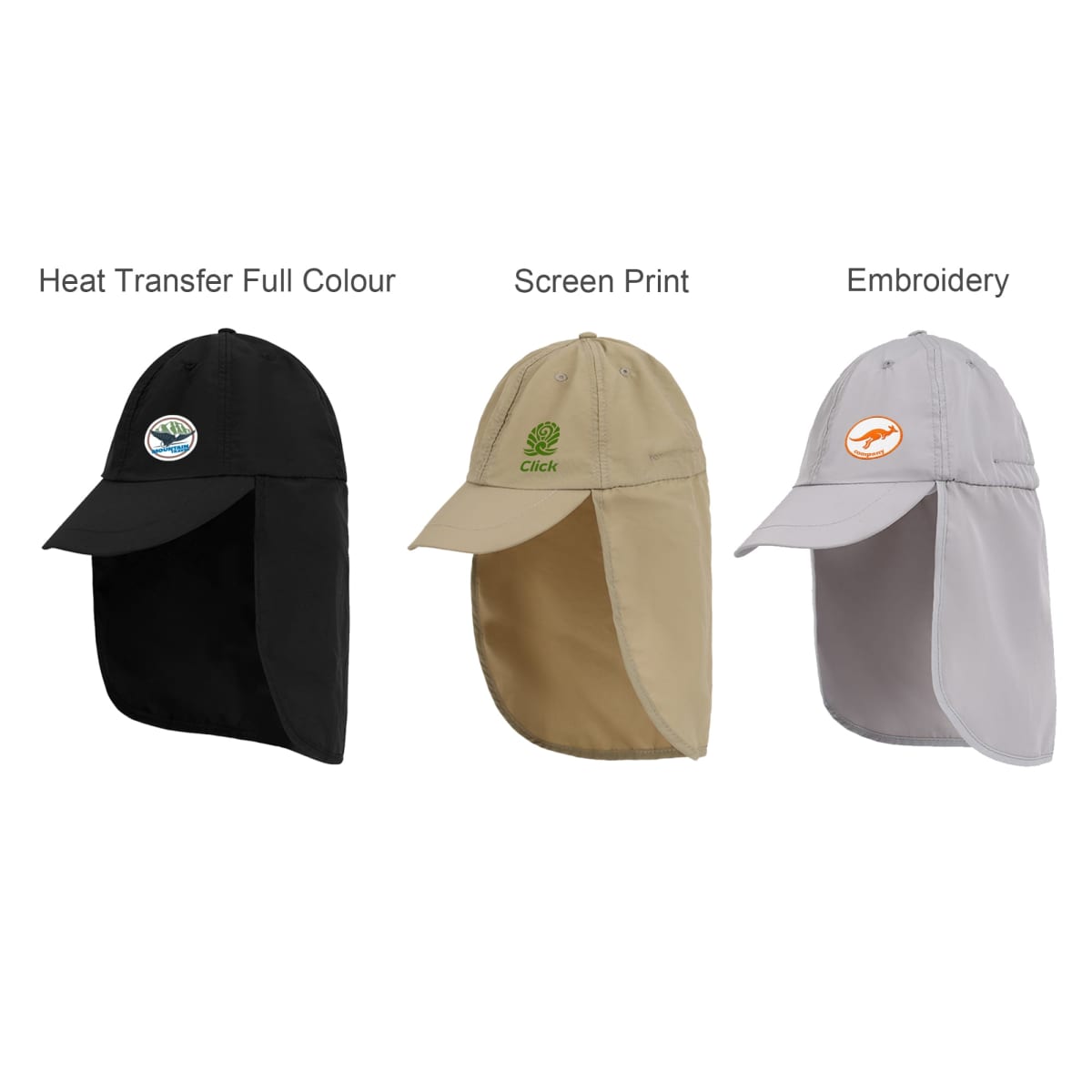 9 week, Baseball Cap with Neck Flap, Screen Print, 1 colour/ 1 position Print