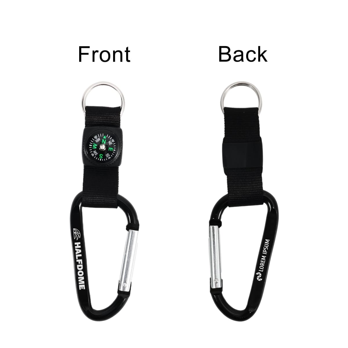 Promote your brand with our Carabiner with Compass Keychain. Made of lightweight and durable aluminium alloy, our keychain is offered in red, rose red, blue, green, silver, and black. Feature custom logos through precise engraving, ensuring a professional and lasting finish. The compass provides reliable direction for outdoor activities, travel, or everyday adventures. Ideal for corporate gifts, event giveaways, or outdoor branding campaigns, combining functional utility with consistent brand exposure.