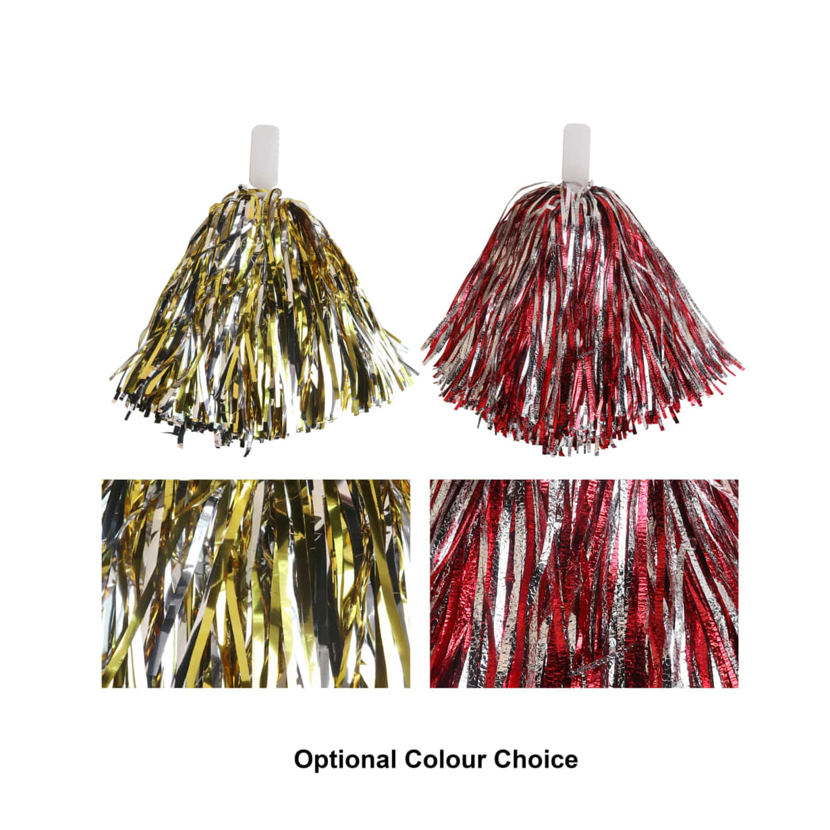 Promote your brand with our new Cheerleading Pom Poms! Made of recyclable PE tassels and a PP handle, this product is striking and eye-attracting. Available in glossy or textured tassels. Two-colour pom poms are also available. You can customize the handle with provided metallic or UV transfer stickers to feature your logo. Perfect for school sports events and team cheerleading activities. A great choice to boost your brand!