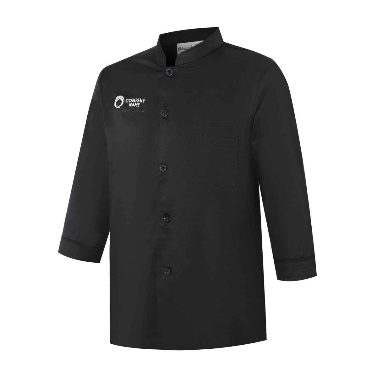 This 3/4 Sleeves single-breasted chef jacket is the classic workwear for restaurants, hotels, and the food industry. Our Choice Chef Jackets are the go-to workwear with all the must-haves like left chest pocket for your most precious tools, sturdy matching buttons, and a single-breasted placket that has you covered from messy spills and stubborn stains. Made of thick twill in 80% polyester for durability and 20% cotton for comfort. Mandarin collar stand with topstitching. We offer different methods to put your brand logo, company name, and slogan by embroidery, full-color heat transfer or customized patch. Do not hesitate to build up your hospitality workwear collection this season!