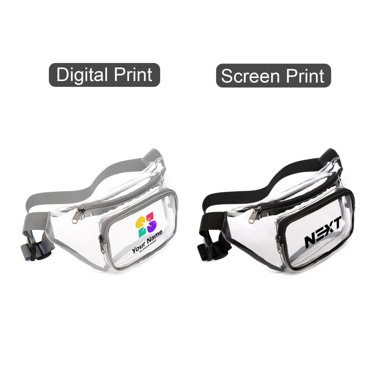 8 week, Clear Fanny Pack, Screen Print, 1 colour/ 1 position Print