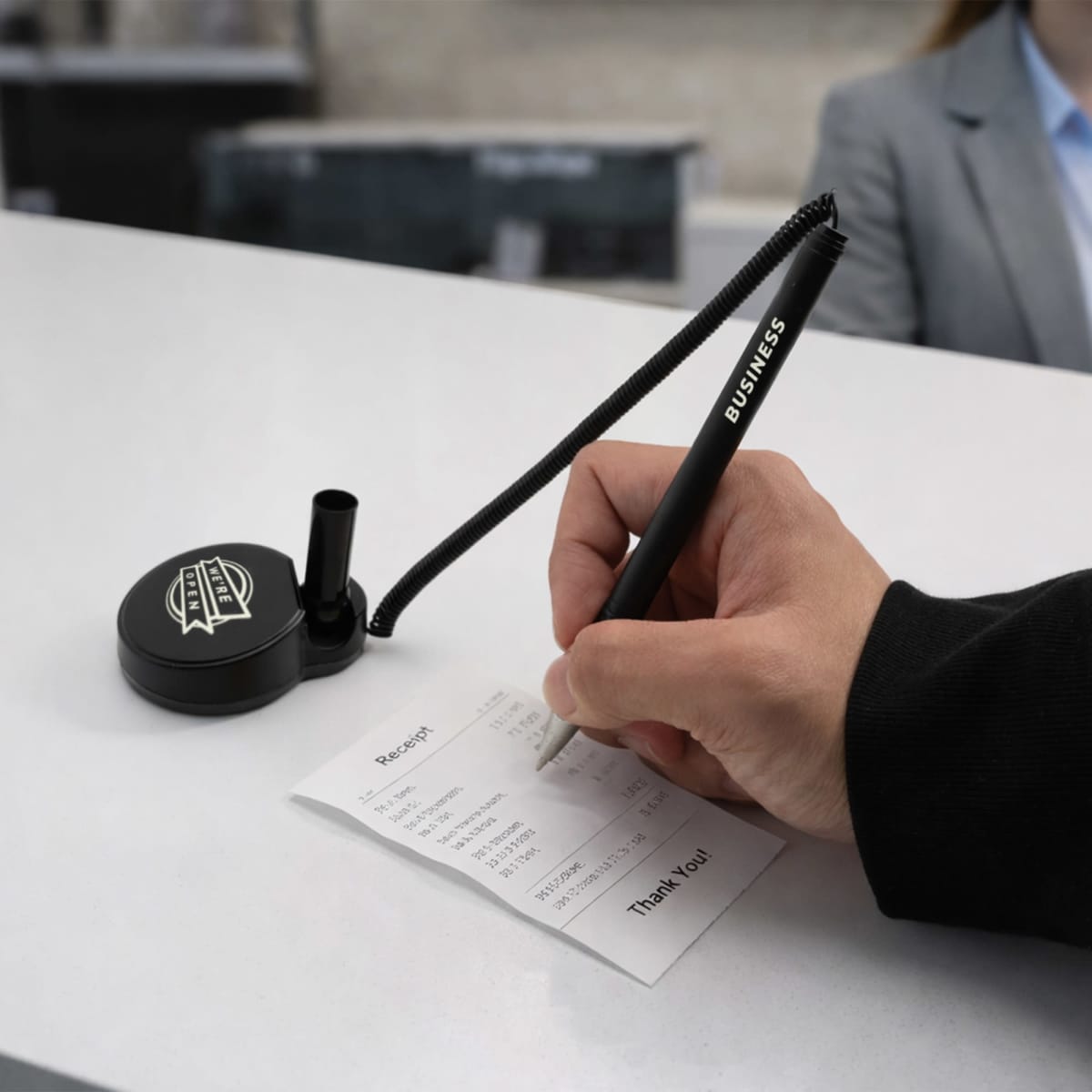 Create a lasting brand impression with our Counter Fixed Signature Pen, a sturdy desk pen designed to stay in place. Crafted from durable plastic, our pen is available in 5 colours. Customised logos or brand messages through pad printing can boost your brand promotion impact. Ideal for reception desks, hotels, or banks, our pen combines everyday function with effective brand visibility.