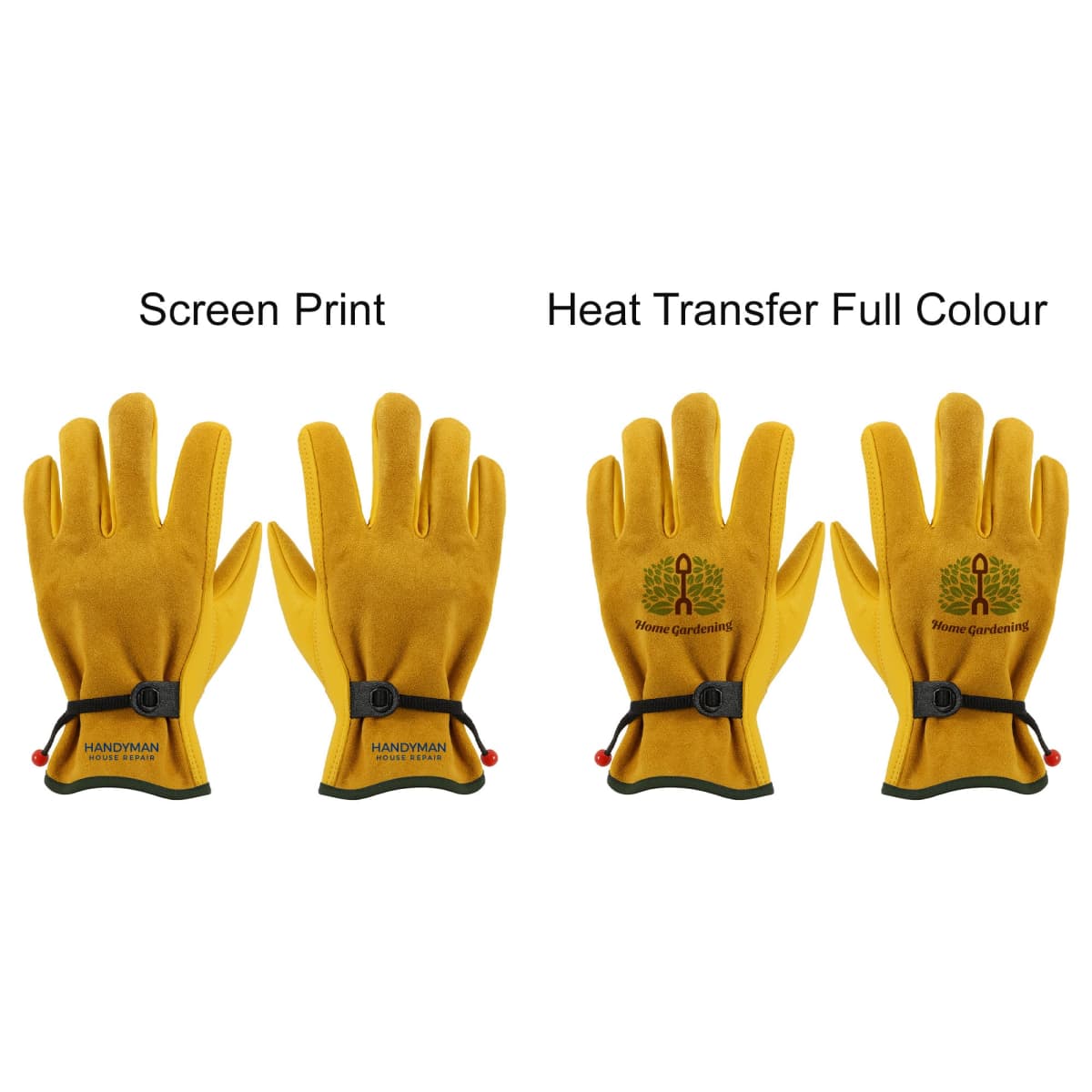 Stand out with our Cowhide Gardening Gloves, crafted from durable, full-grain cowhide for puncture and abrasion resistance. Offered in a versatile size to comfortably fit most users during rigorous tasks like pruning, planting, or landscaping. Personalise them through Screen Print or Heat Transfer Full Colour to showcase your logo and message. Reliably protects hands during gardening tasks, defending against punctures. Transform essential safety gear into walking brand advertisements.