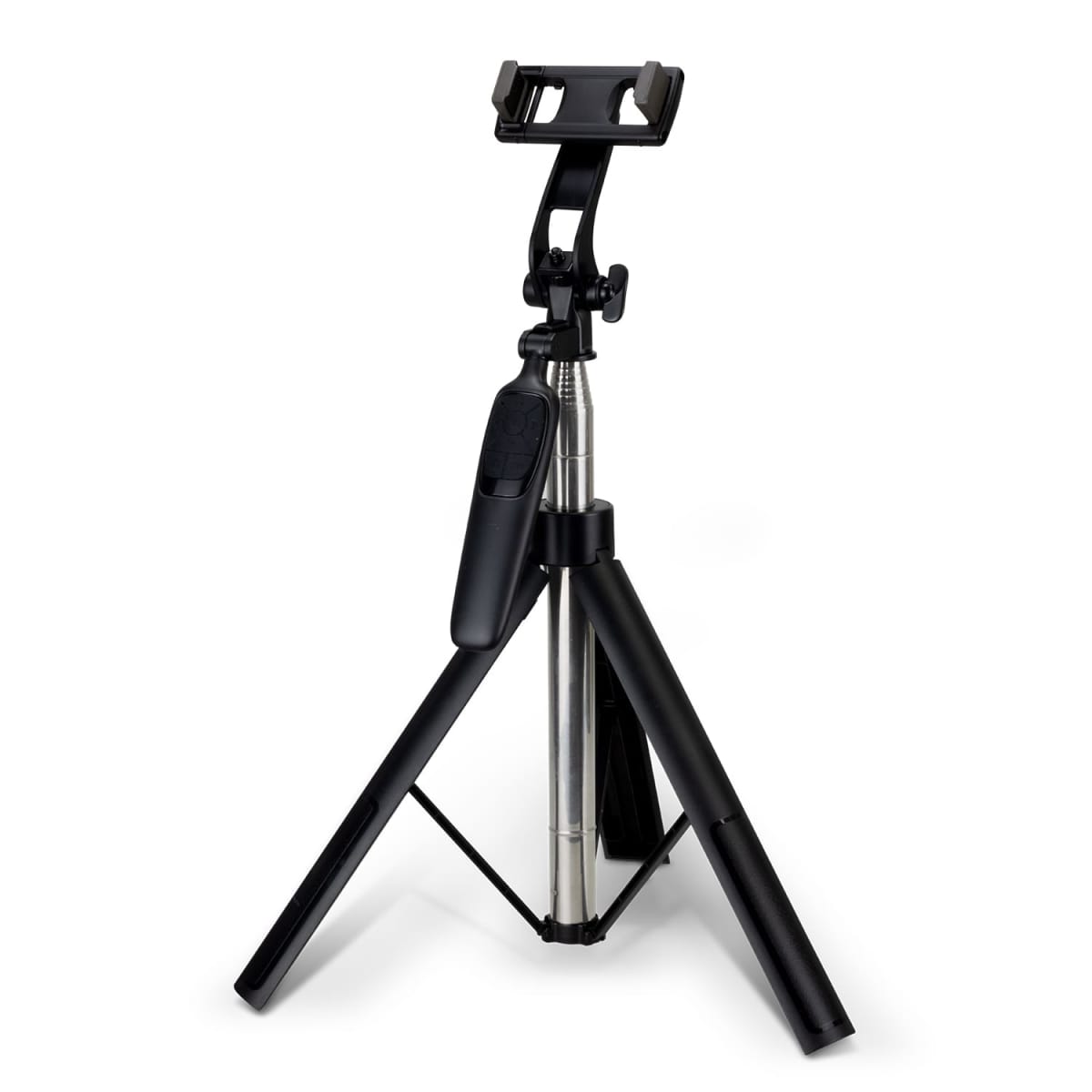 Versatile selfie stick and tripod that can rotate 360 degrees and serves as an all-in-one solution for photography needs. It has a compact design but can extend up to 150cm in height, making it perfect for capturing those hard-to-reach shots. The universal cradle will securely hold most smartphones, action cameras, and compact cameras. A rechargeable wireless remote makes it easy to take pictures or record videos without touching the device and a convenient EVA carry case makes it easy to take this photography accessory anywhere. The Creator Selfie Stick Tripod is presented in a printed black gift box.