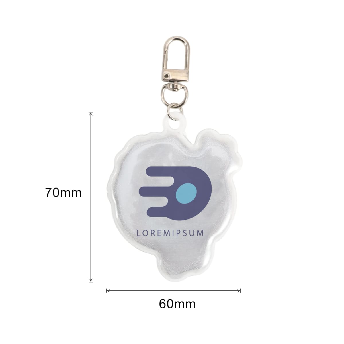 Get your branding seen with our Custom Shape Reflective Keychain, crafted from durable PVC material with high-visibility reflective properties. Available in custom colours to match specific branding requirements. Customised shapes can be made within dimensions of L70 x W60mm. Design the keychain through Screen Print or Offset Full Colour Print on the surface to showcase your logos or designs. Our Reflective Keychains can protect your safety during night time activities. Ideal for night events, outdoor activities, or promotional gifts.