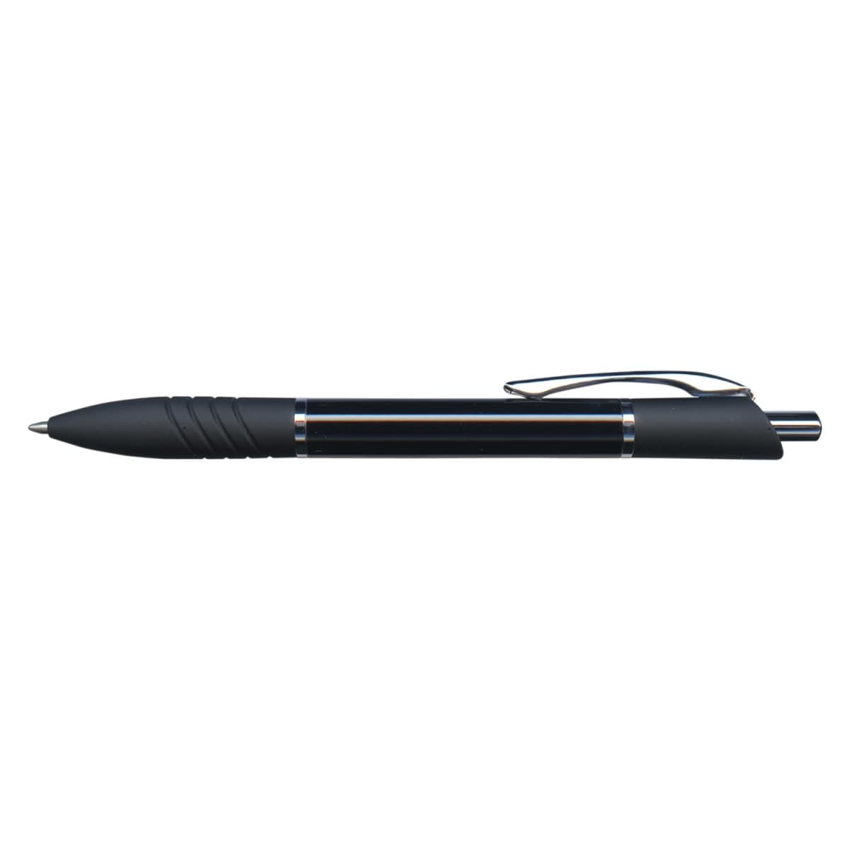 Retractable aluminium ballpoint pen with a lacquered barrel, a soft-touch grip and shiny chrome accents. It has a black large volume refill with 1200 metres of writing ink and can be presented in an optional pen sleeve. Features: * Retractable aluminium ballpoint pen with a lacquered barrel * 1200m of black writing ink * Soft-touch grip and shiny chrome trim * Optional pen sleeve available