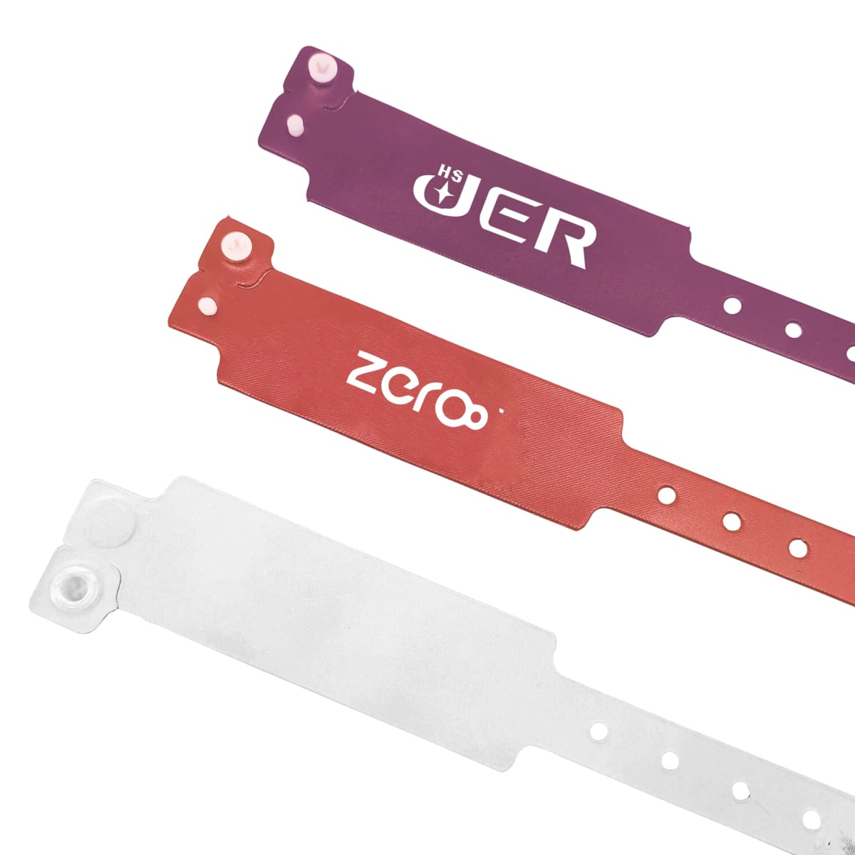 Our new custom wristband is a single-use, disposable, and snap lock wristband with one colour screen print. Made of durable pvc material, which provides a water-resistant seal. It is used to identify people for security purposes. These wristbands are often used at festivals, sporting events, or other large events where there is a need to identify people.