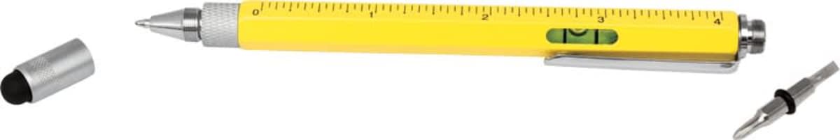 This top of the range metal 9-in-1 pocket tool incorporates a pen, stylus, 4 rulers, spirit level, phillips and flat edge screwdriver all in a useful stylus pen. Available in black, blue or yellow, all with silver trim.