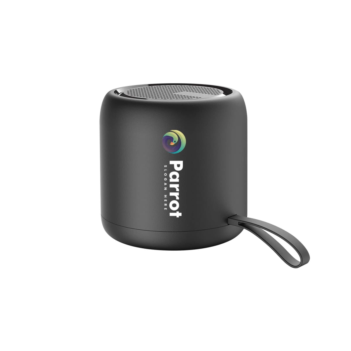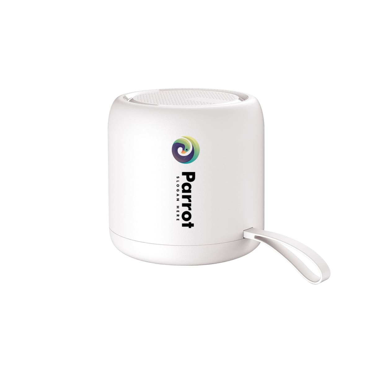 Listen to tunes and share your music with our Portable Waterproof Bluetooth Speaker. Made of ABS material, it is lightweight and durable. Featuring UV print on the side, to showcase your brand. USB-C Charging cable supplied as standard. A fully charged battery can power the speaker for around 6 hours at maximum volume. It is compatible with your phone, tablet, or any other Bluetooth-enabled device and has a wireless connectivity range of approximately 10 meters. Our bluetooth speaker supports bluetooth 5.3 connection, handsfree, IPX4, and TWS. With a handy tie to loop onto your bag, or anything else, for tunes on the go.