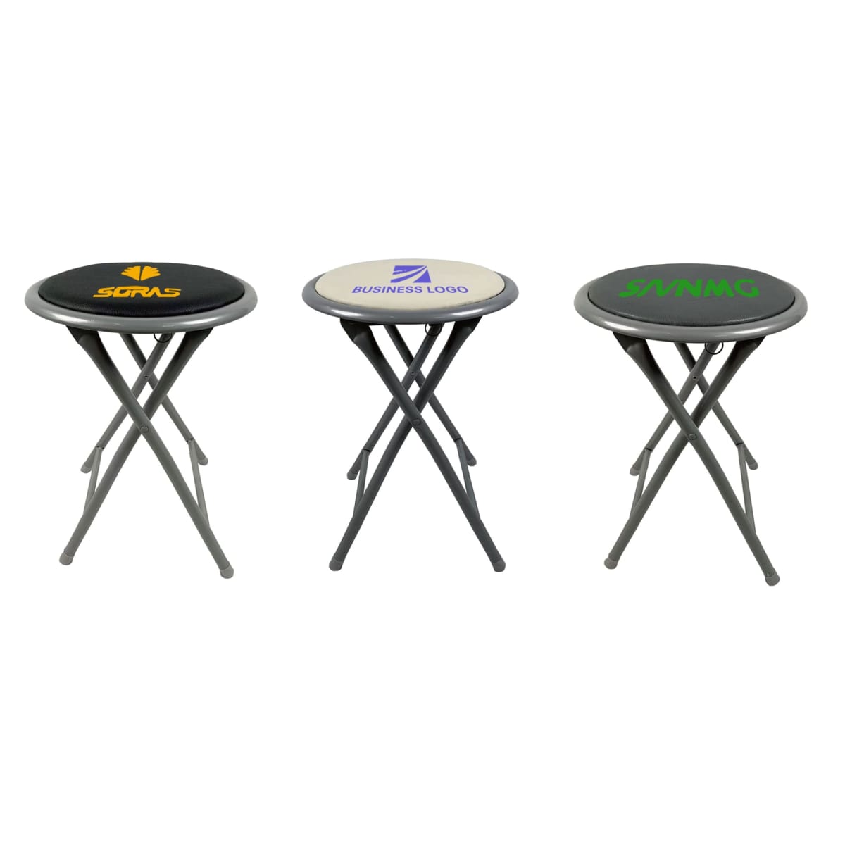 Made from PVC leather and a carbon steel frame, which is both lightweight and stable. Complete with screen print on the seat padding surface to show off your branding.This portable folding stool folds flat for convenient storage in small spaces when not in use, and is a handy option to have, when you need an extra seat. With strong construction that can withstand weight up to 120kg.