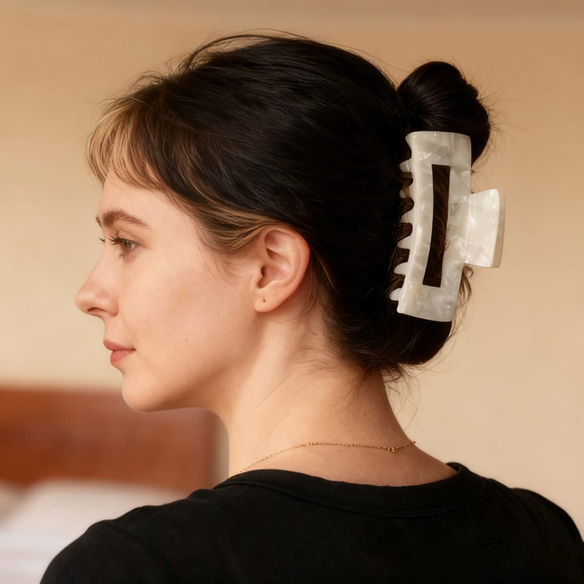 Promote your brand with our Hair Claw Clip, featuring light and handy solid teeth. Crafted from durable acetate material, our clip is available in white, opal blue, and tortoise shell finishes. Personalise the clip through pad print to showcase your logos or brand messages for clear and long-lasting effects. Perfect for daily use, social activities, or promotional events, our clip offers an effective way to promote brand awareness through everyday style.