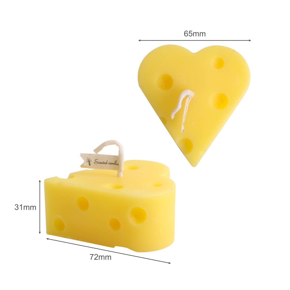 Light up your branding, with our Heart Cheese Shape Candles! Made from premium paraffin wax, which is non-toxic and keeps its fragrance longer. With a digital label sticker on the wick to highlight your design. The candle scent is fragrant cheese scent. Perfect for decorating your home, office, or any space during the special time, also great at your next promotional event. Our heart shape cheese candle is an atmosphere candle that can burn for about 2 hours.