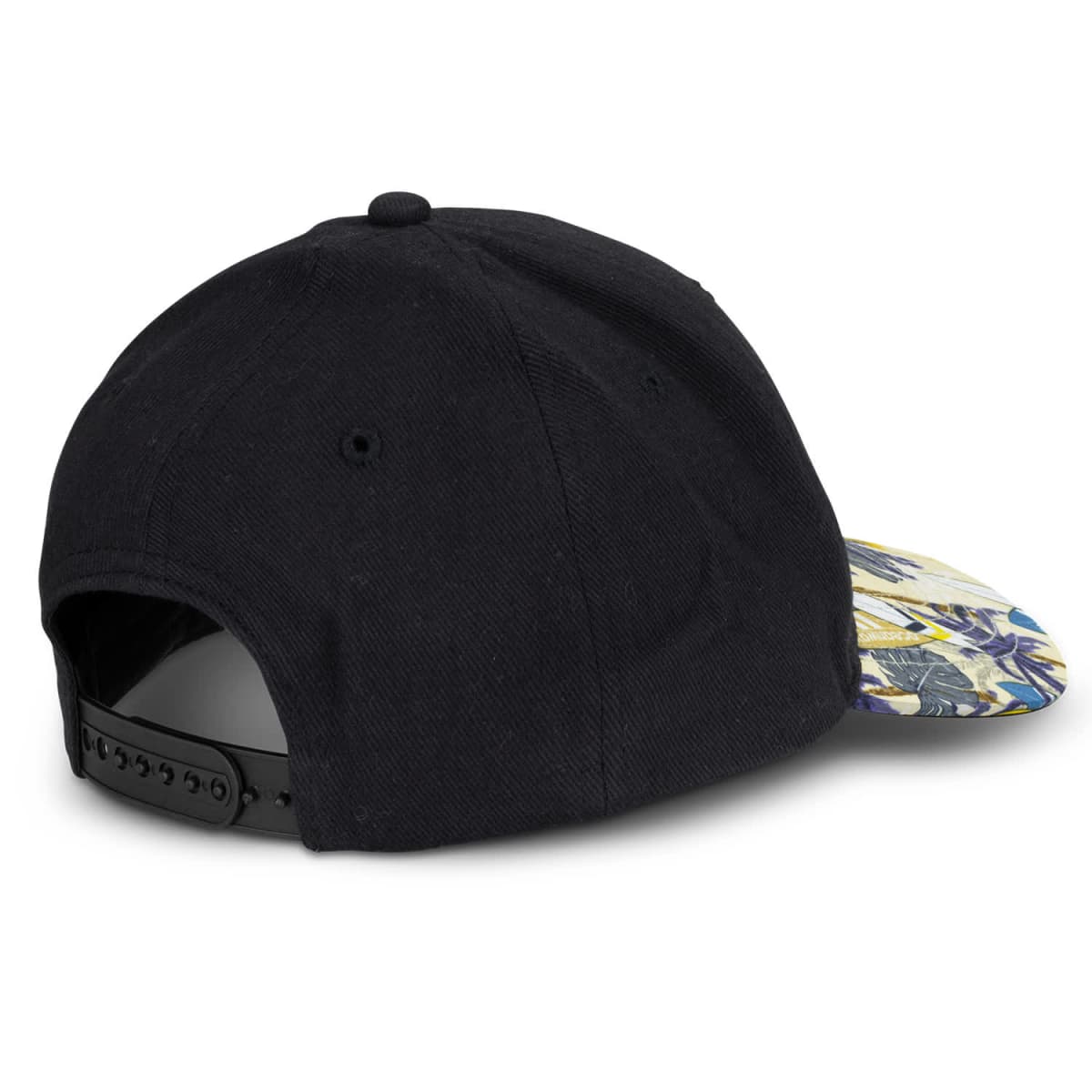Premium structured six panel cap which is made from cotton twill. It has a pre-curved peak which is fully customisable with edge-to-edge full colour print on top and a choice of 12 colours underneath. The hat also features embroidered eyelets, a sweatband and an adjustable snap back closure that allows one size to fit most people. Embroidery is available for an additional charge. A production lead time of 35 working days applies to this product by air freight and larger orders can be sea freighted on request to reduce the freight cost.
