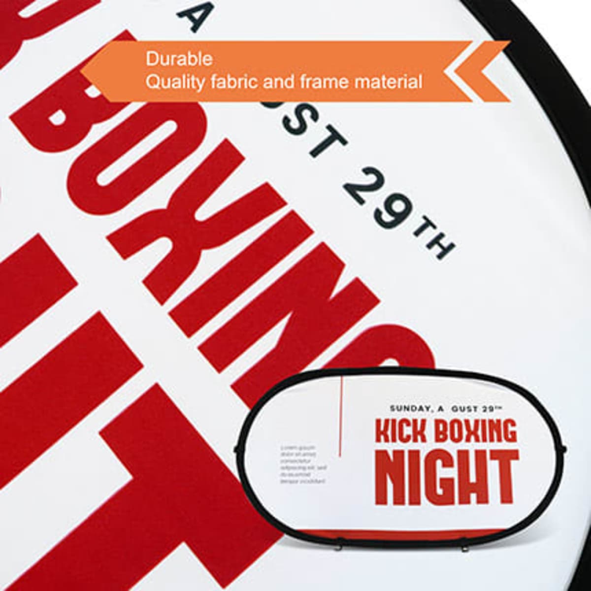 Our Pop Up Banners are lightweight and portable for both indoor and outdoor activities. They can be easily set up in seconds and are great for brand exposure in sporting events during breaks or play. Strong but lightweight flexible frame twists and folds into a compact circle carry bag. The foldable frame also makes them safe to use on sports fields, since they present lower risk of injury to the players.