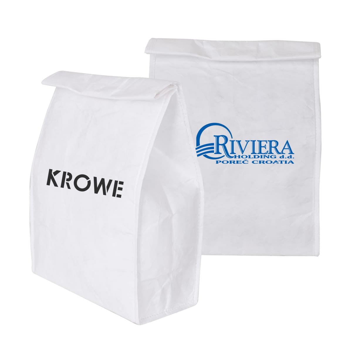 Personalised Tyvek lunch bags are not your ordinary paper bag. It may look and feel like a paper bag, but this cooler lunch bag is manufactured from trendy Tyvek. The Tyvek has become very popular and this material itself is lightweight and extremely durable, resistant to tear and water. This Tyvek cooler lunch bag features in aluminium foil laminated foam insulation, a dual velcro folding top closure, it is excellent for keeping your food warm or cold. Suitable for packing fruits, medicines, lunch, and more.