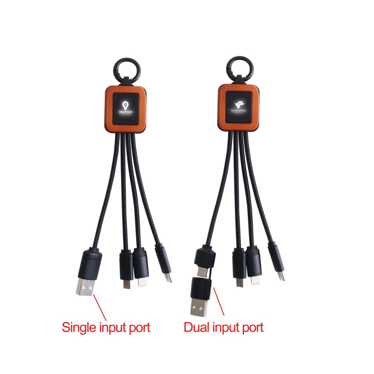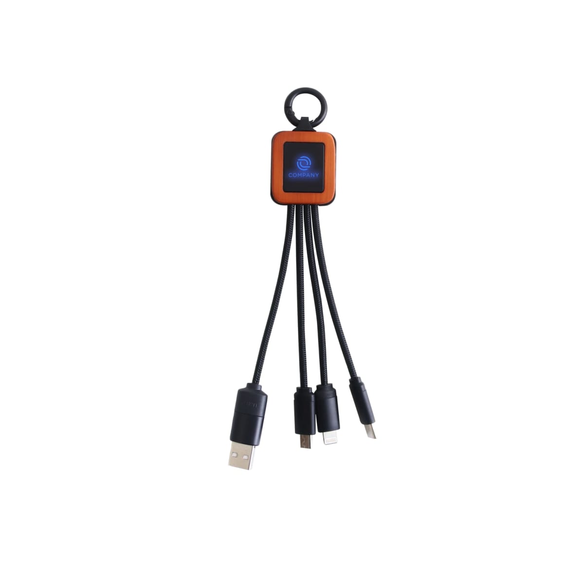 Get your branding seen while charging your devices, with our new charging cable range! This light-up logo charging cable, made from rPET and bamboo material, comes with Lightning, Micro-USB and Type-C output connectors. Up to three devices can be charged simultaneously. You will never have to search through a jumble of cables again. Available in round and square shapes. You can engrave the disc with your logo, featuring back illumination to highlight your design. This charging cable would surely become the perfect high tech giveaway.
