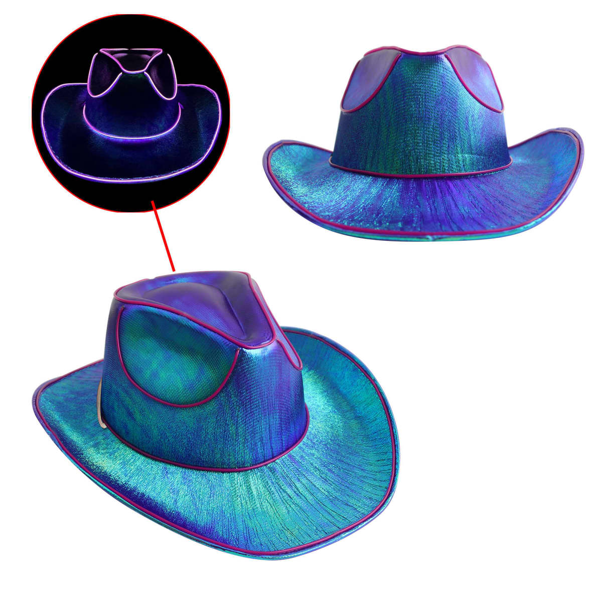Stand out with our Light Up Cowboy Hat, a unique blend of style and innovation. Crafted from durable EVA material, it features built-in LED light strips and a circuit board for a dazzling glow. Complete with full colour heat transfer on the front of the hat to highlight your brand. Lightweight and sturdy, this hat is ideal for themed parties, cosplay, or outdoor adventures. Combine functionality with eye-catching design to leave a lasting impression wherever you go!