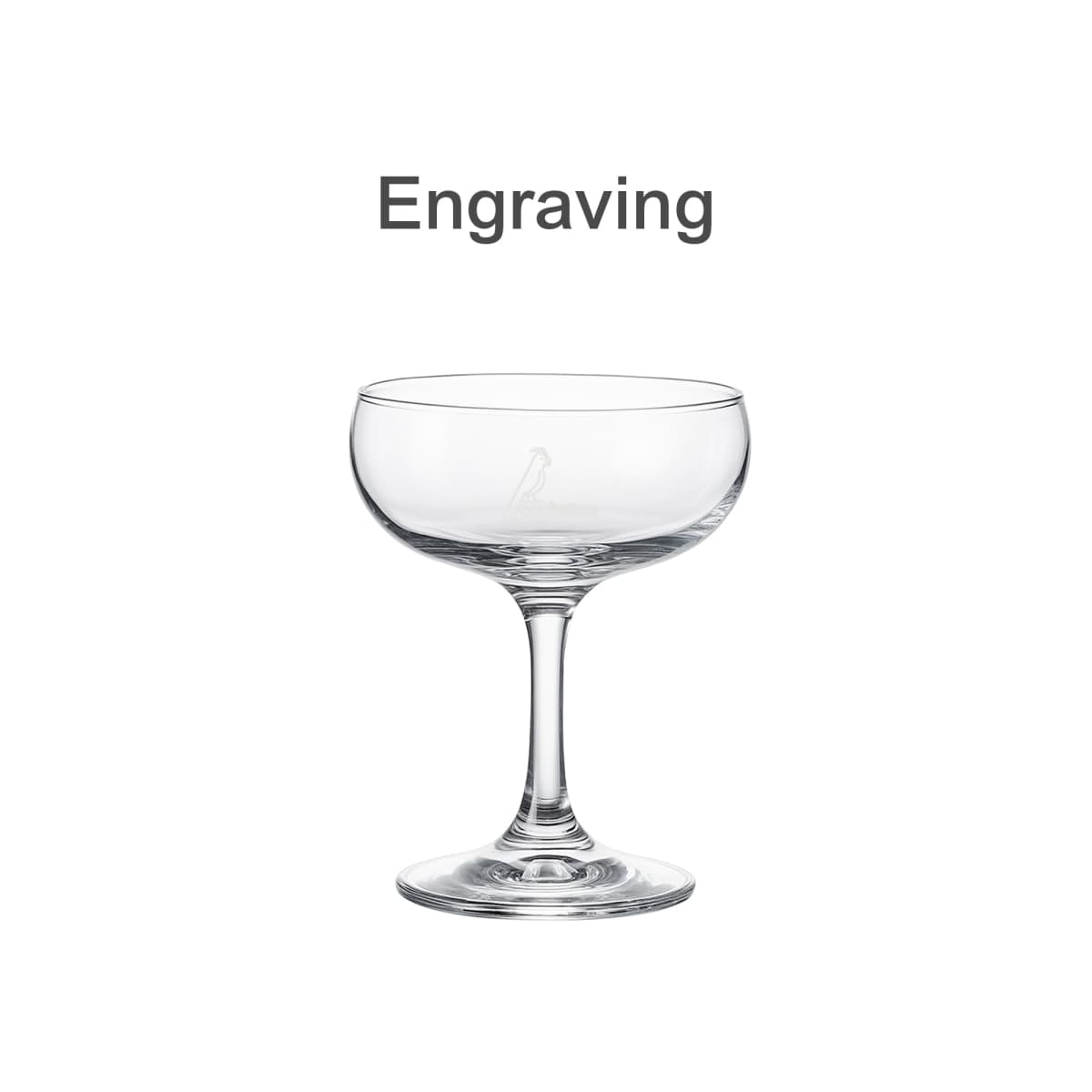 Get your branding seen with our new Martini Coupe Glass! Crafted from high-quality soda lime glass, this 140ml coupe features the timeless, elegant curves that have made the style a classic for showcasing cocktails and spirits. Its well-proportioned bowl, stem, and base ensure a refined balance and a comfortable hold. With engraving to highlight your branding. An ideal choice for weddings, events, bars, hotels, and clubs.