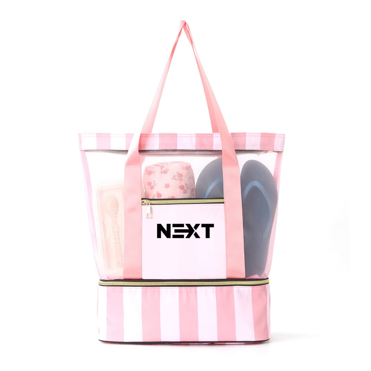 Travel in style, with our Mesh Beach Tote Bag! Made from polyester. With screen print or heat transfer to highlight your logo. This bag offers breathability while keeping sand out. The double-layer design provides ample space for all your essentials. Ideal for both casual outings and promotional purposes, it's truly a must-have for any adventure!