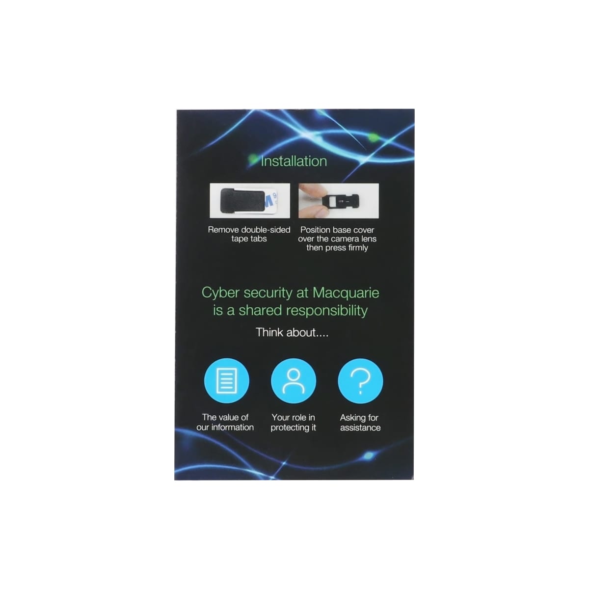 Whenever you are using devices with a built in camera, there is a risk that someone is secretly spying on you. Do not take this risk! To install a webcam cover now. Simple use your webcam cover with just a few steps. Just remove double sided tape tabs, position over the webcam then press firmly for a few seconds. Once installed, simply slide to the left to close or slide to the right to open. Custom card is also available.