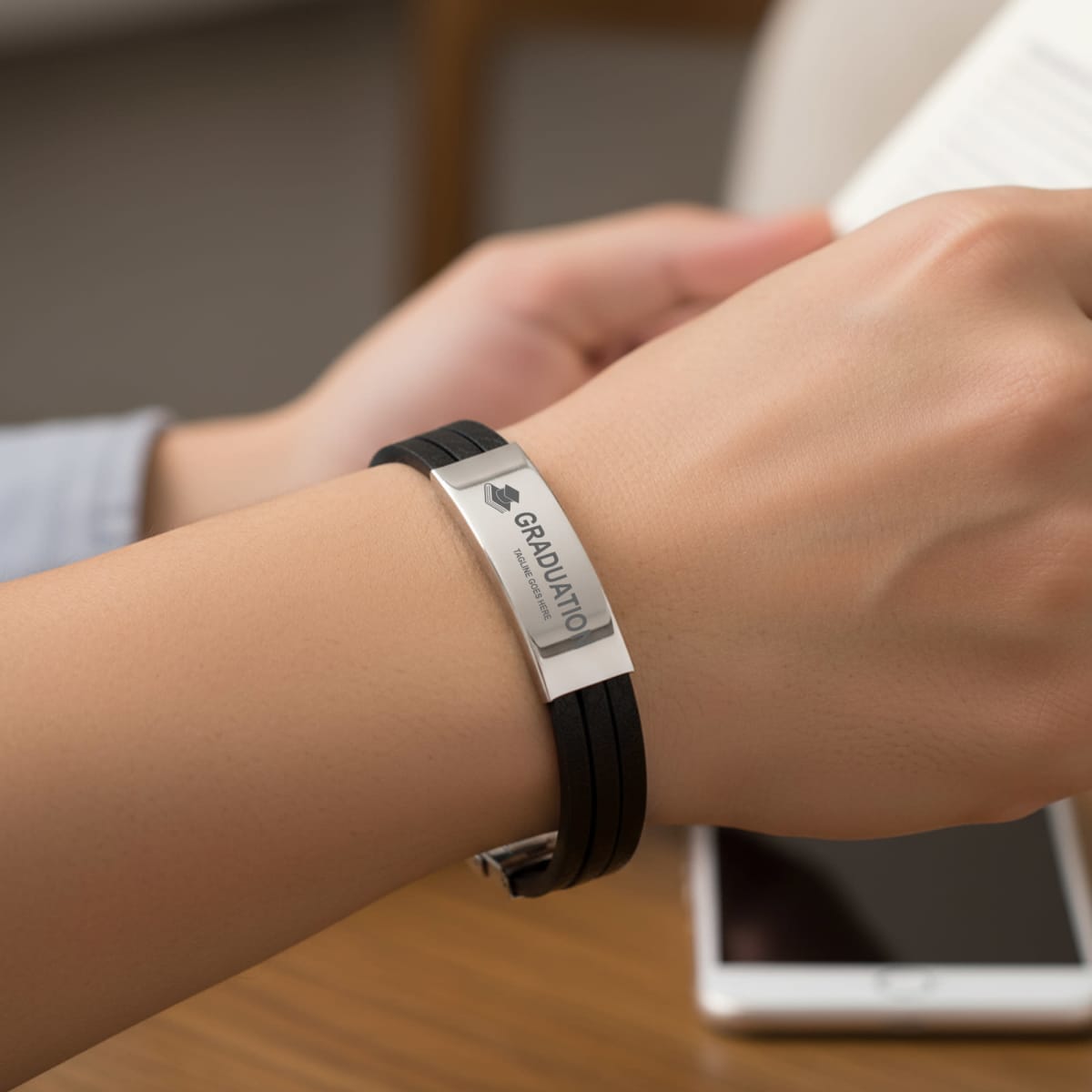 4 week, Multi-layer Leather Bracelet, Engraving, 1 pos