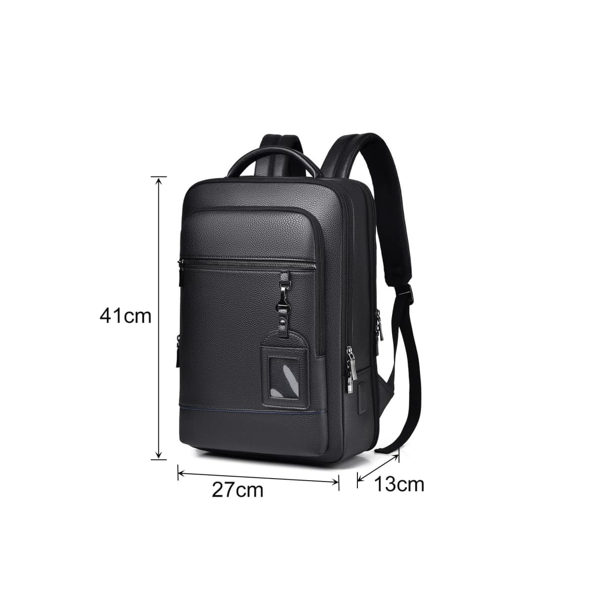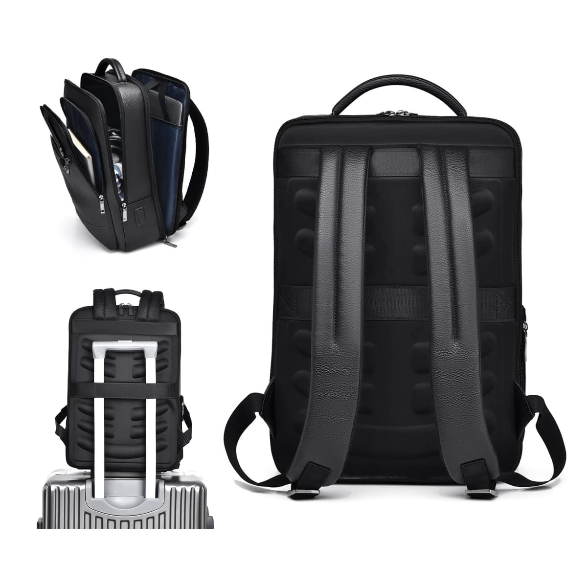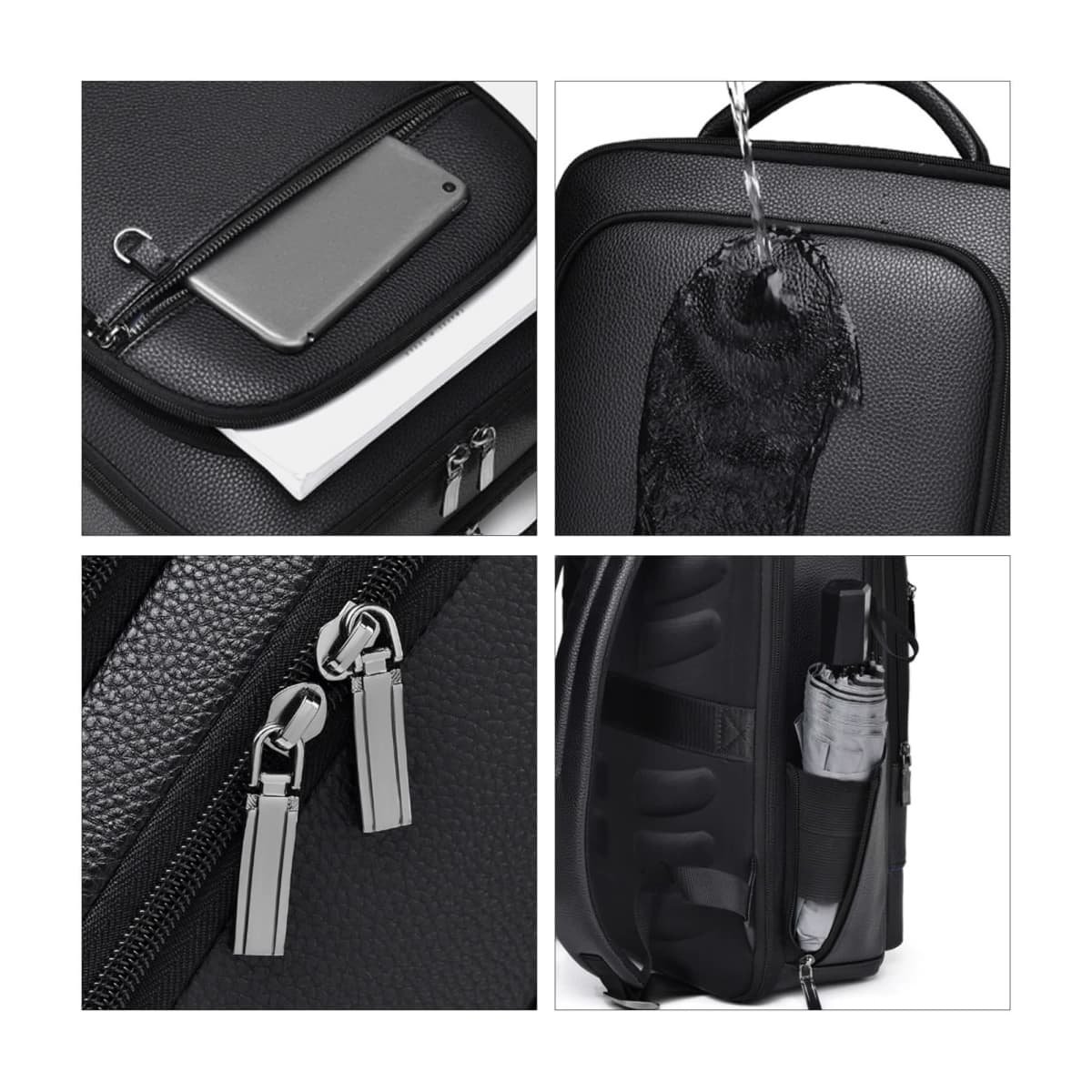 This Polyurethane Laptop Backpack is the perfect business companion which fits up to your 16" laptop, featuring a cardholder, a front zipper pocket for essentials, 2 adjustable side pockets for bottles, a main pocket with USB and Type-C charging and a back pocket especially for your laptop. Our quality backpack is made of polyurethane, that is water resistant and durable. You can showcase your design with screen print or debossing.