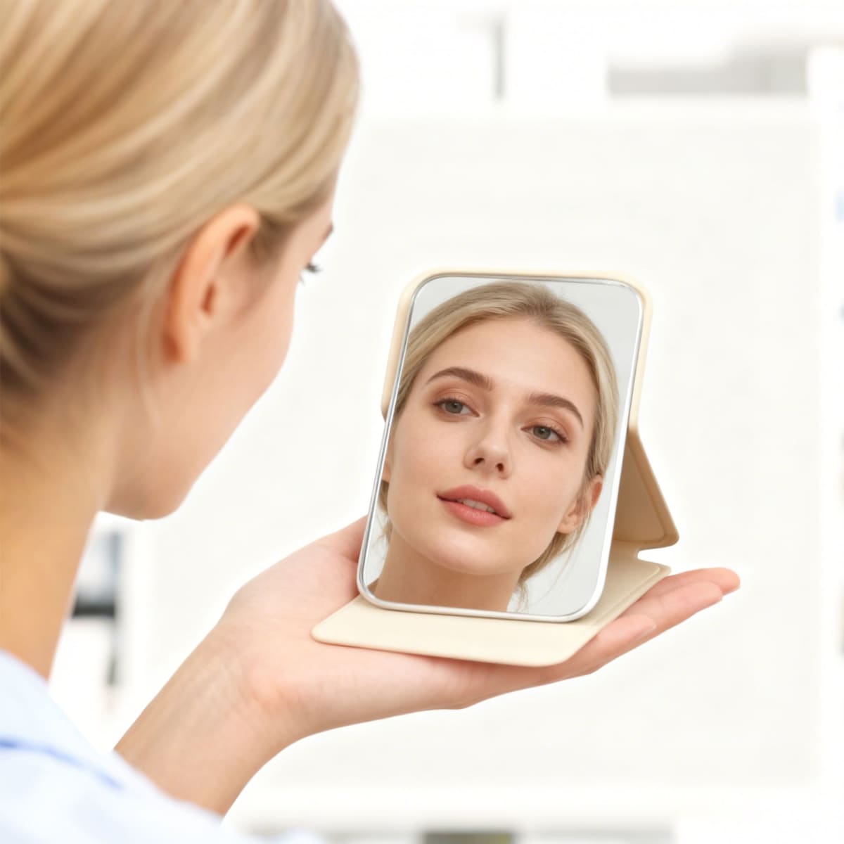 If you need a handy and stylish mirror, the Portable Mini Mirror is made with high-quality PU and glass, making it perfect for your purse or travel bag. Customize it with UV printing on the back to give it a personal touch. Ideal for makeup, travel, and as a cute decor piece.