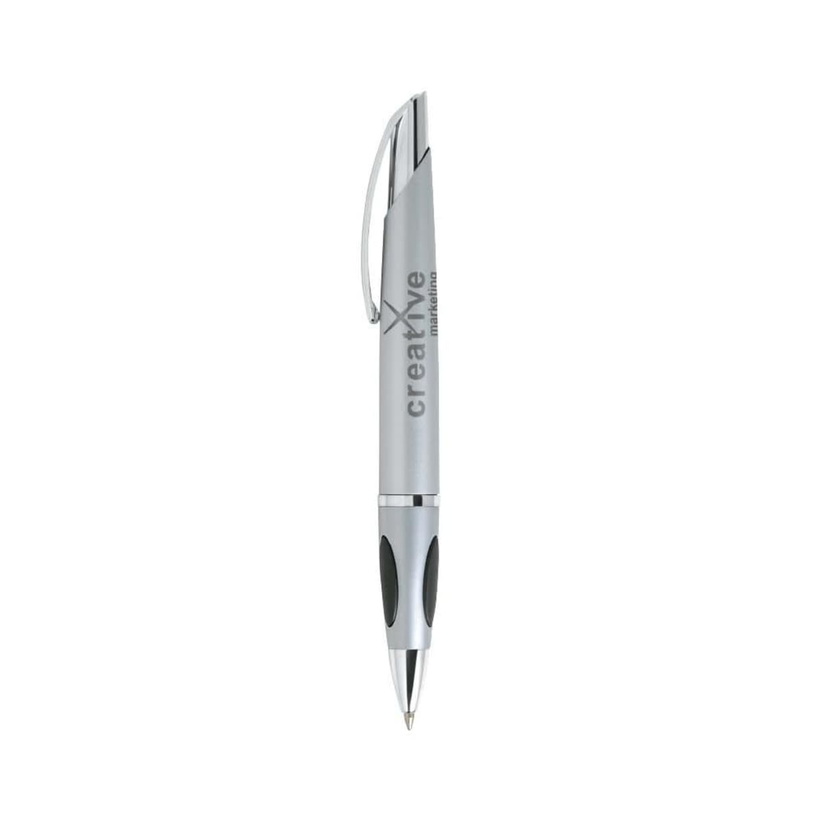 The Protrusion Grip Pen is designed for comfort with soft, raised grip pads that make writing smooth and easy. Its twist-action mechanism and polished chrome-plated steel clip give it a crisp, modern look. Presented in a black velour sleeve (Product Code GZ163), it’s ready to impress. Supplied with black ink.