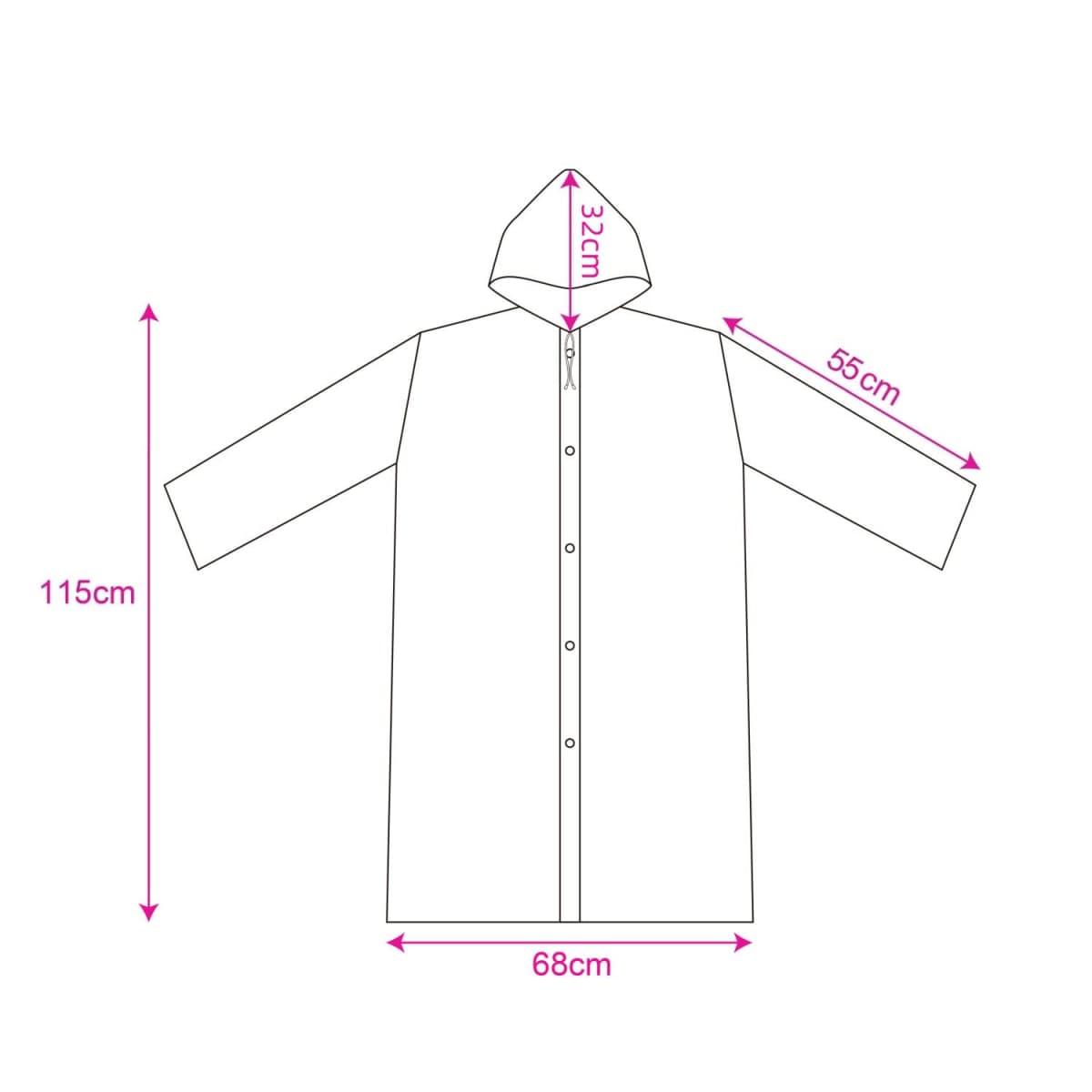 - Free size Adult : 1/2 Chest width = 68cm; Body length = 115cm; Sleeve length = 55cm