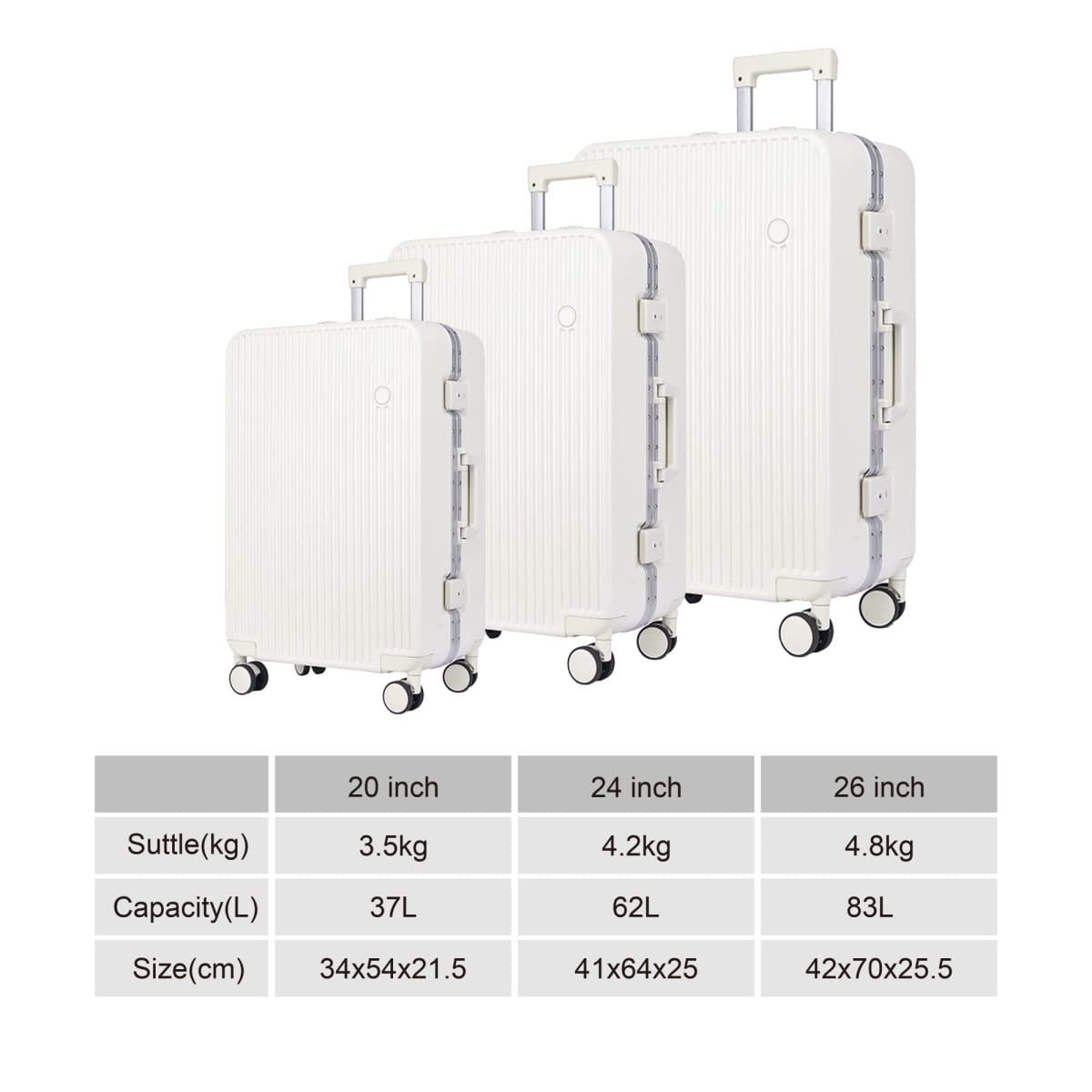 - 20 inches: 54(H) x 21.5(W) x 34(D) cm 24 inches: 64(H) x 25(W) x 41(D) cm 26 inches: 70(H) x 25.5(W) x 42.5(D) cm