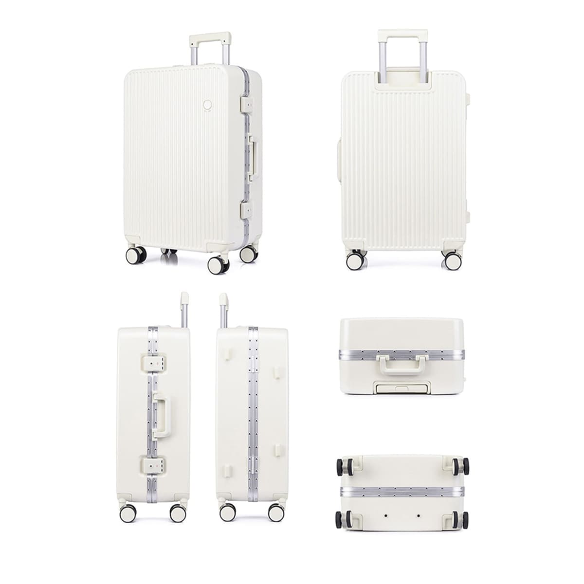 Use our Ribbed Suitcase will make your next journey a breeze. The suitcase uses a 28mm diameter epoxy doming to customize your logo. It is made of ABS, PC materials and alloy aluminum frame, equipped with 4 silent universal wheels, which effectively reduces noise while in use, and can be rotated or pushed horizontally easily and comfortably. Equipped with two ordinary combination locks, upper and lower, you can keep your luggage well protected. It comes in three sizes: 20/24/26 inches to meet your different needs. The main compartment of the suitcase has a zippered mesh pocket and a waterproof bag. Available colors are black, white, and gray. Great for getting your branding seen on the go.