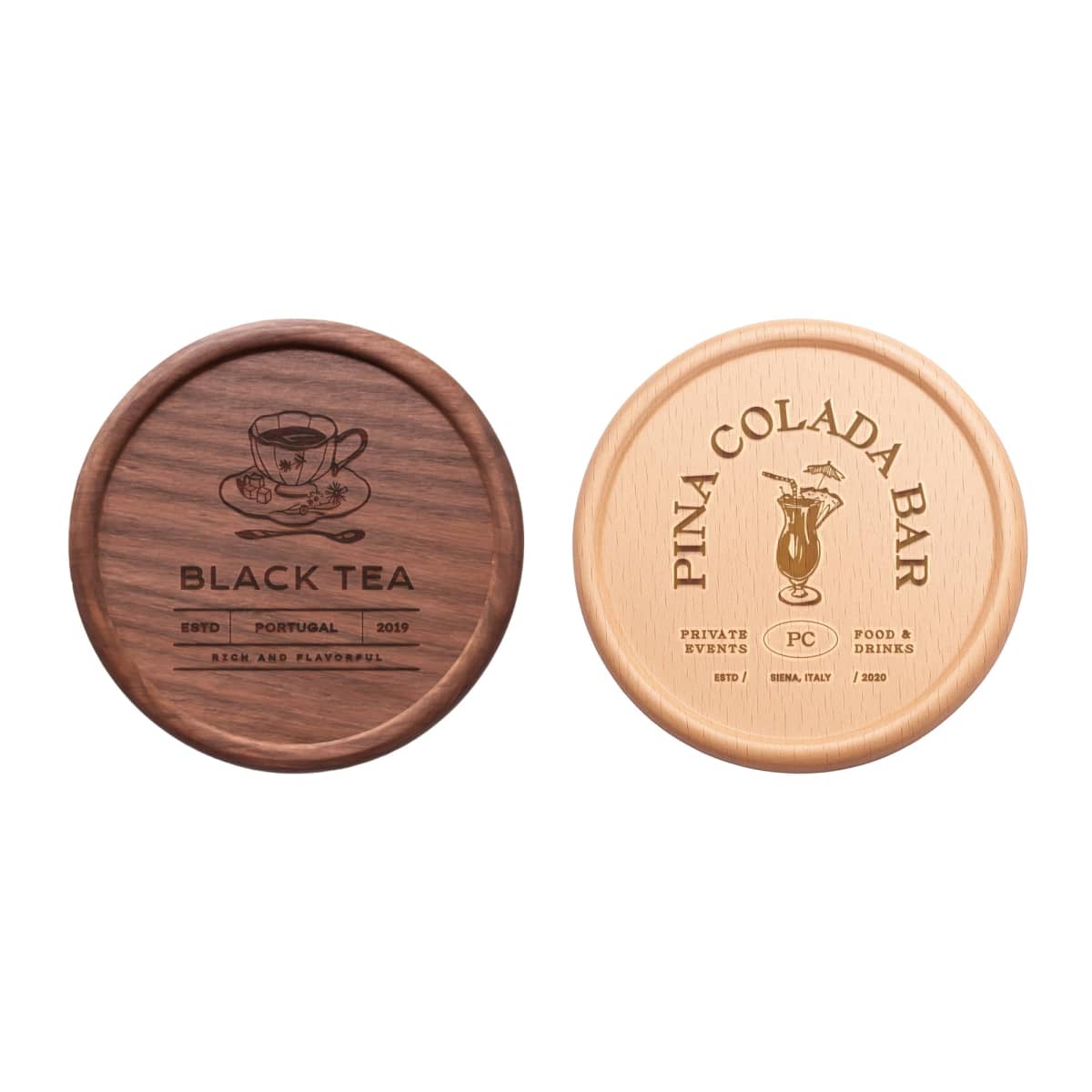 Promote your brand with our Round Wooden Coaster, available in two colours. Crafted from premium materials, the light brown coaster uses beech wood and the dark brown one walnut wood. Personalize your coaster using UV print or Engraving, which etches your logos or designs with clean lines and lasting clarity. Ideal for cafes, homes, or office use, our new coaster is perfect for gifting or promotional campaigns.